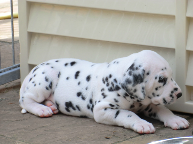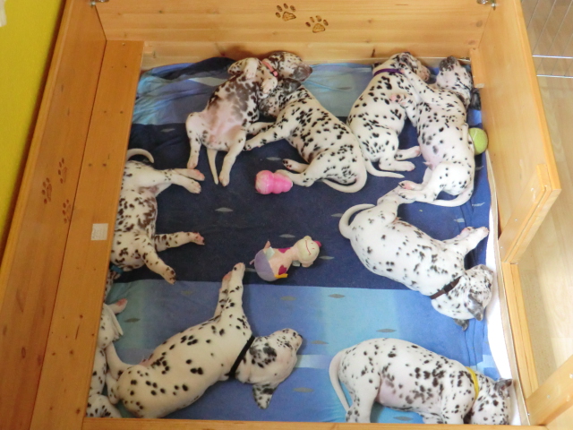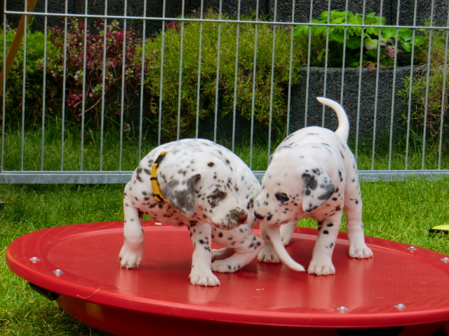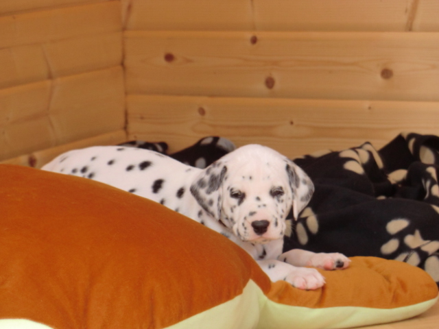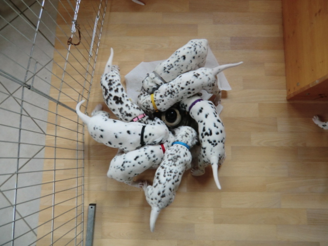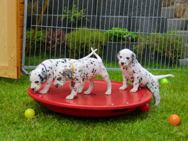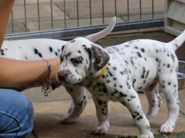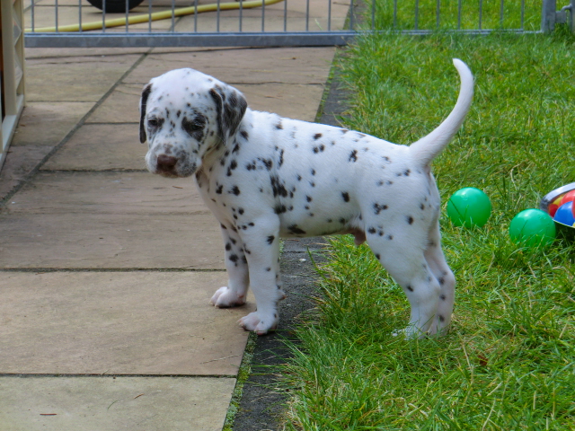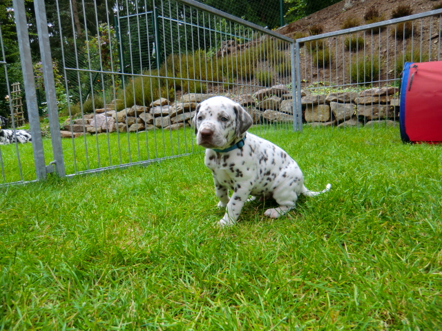 Er wird ab dem 17. August geimpft, gechipt, AEP-Untersucht (Gehör), mit VDH Papieren und Startpaket (Futter, Halsband, Leine, Spielzeug, etc.) abgegeben. Wenn Sie Interesse an dem wunderschönen kleinen Fleckenzwerg haben, würden wir uns über Ihren Besuch freuen! Tel.: 02253-546999 oder E-Mail info@eifeldalmatiner.de