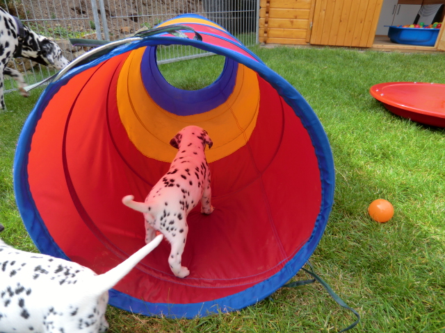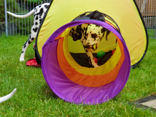 Aron ist auch ganz mutig und geht durch den Tunnel!!