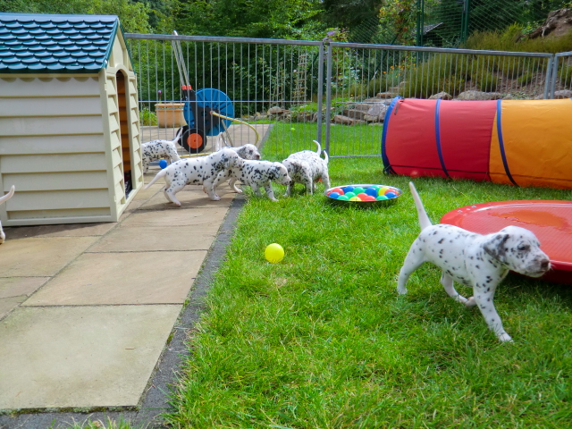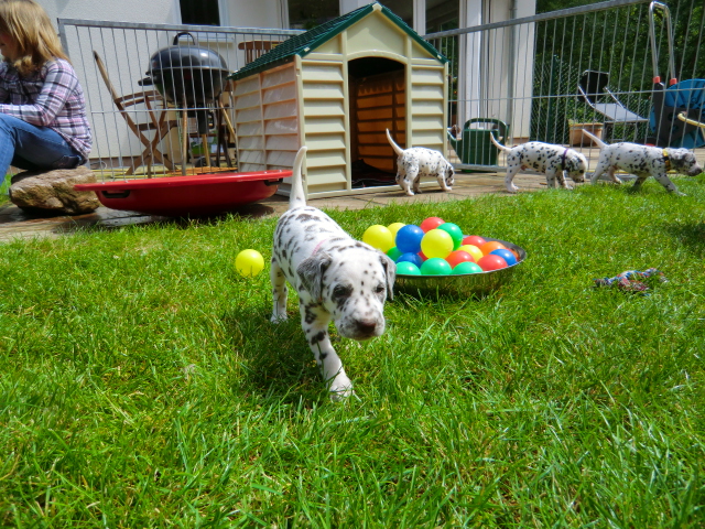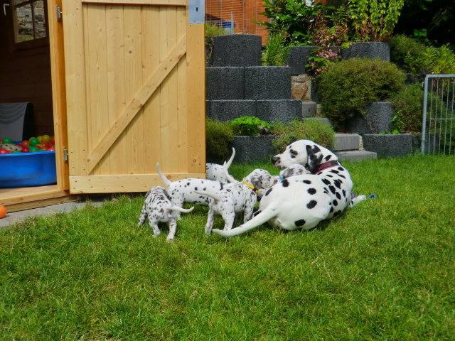 26.07.2011 Die A-chen beenden heute bereits die 5. Woche - endlich durften sie nach draußen ins Welpenhaus ziehen!