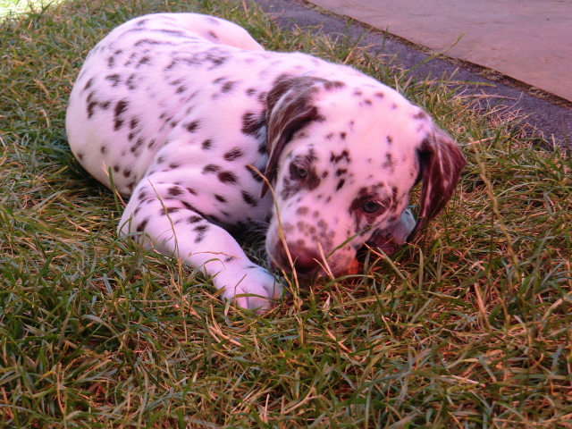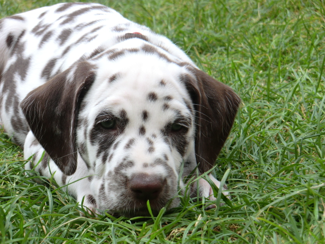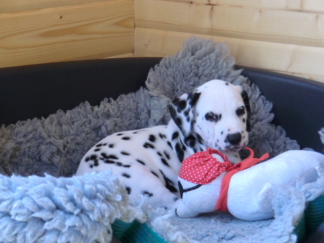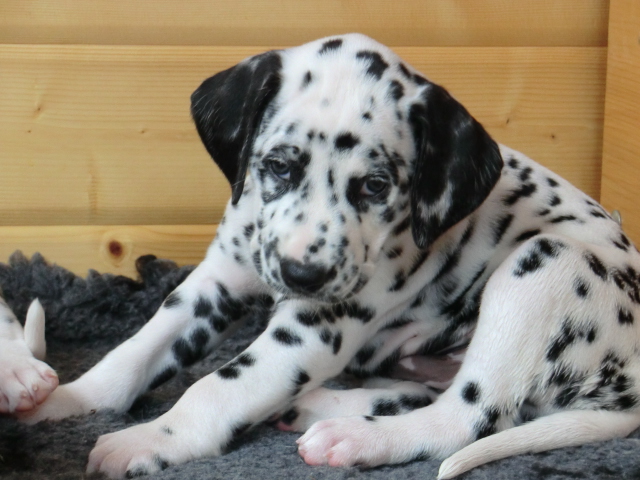 Aragorn liebt Kinder sehr - da kommt er ganz auf seine Mama - und ist ein sehr fröhlicher und aufgeschlossener Rüde. Er besitzt eine sehr schöne, gleichmäßige, lackschwarze und auffällig schöne Tüpfelung!