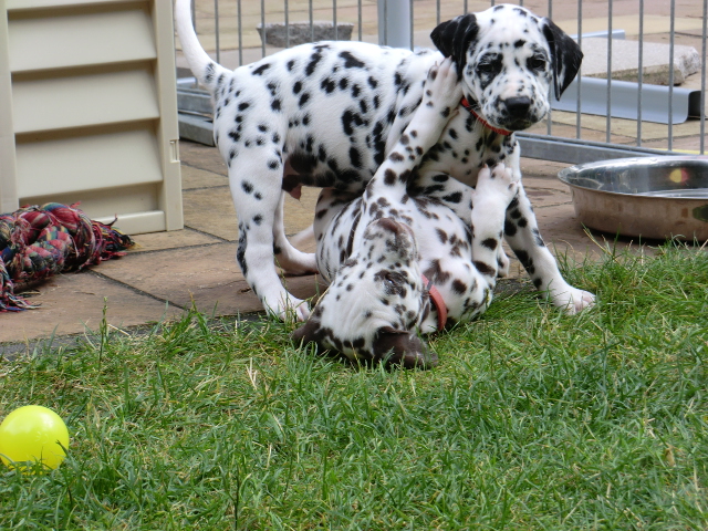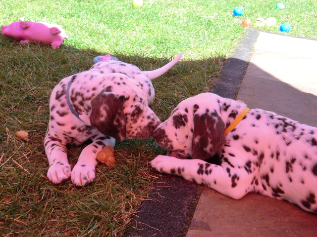 Dalmatinerhündin Zoe war auch mal wieder zu Besuch und diesmal durfte sie auch mit den Zwergen toben, und hat auch gleich ihre baldige neue Mitbewohnerin Abby mal ganz genau anschauen können!