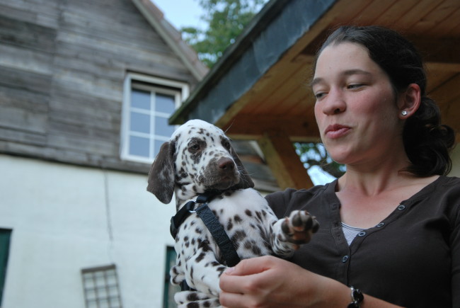 Am 22.08.11 wurde der Schokoprinz "Amico mio Emil" (übersetzt "mein Freund Emil") abgeholt. Es war liebe auf den ersten Punkt, und schon vor dem ersten Besuch der Welpen stand für Meike fest: Herr Blau soll es sein! Die Knutschkugel Emil wurde regelmäßig besucht und nach 8 langen Wochen durfte Frauchen Emil endlich mit nachhause in den kleinen ländlichen Ort Nümbrecht nehmen. Er wird einmal als Familien- und Pferdebegleithund ein Leben führen wie man es sich für einen Dalmatiner nur wünschen kann!
