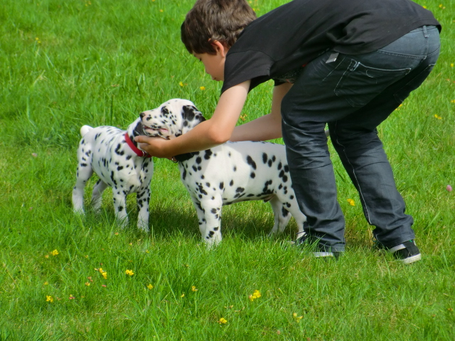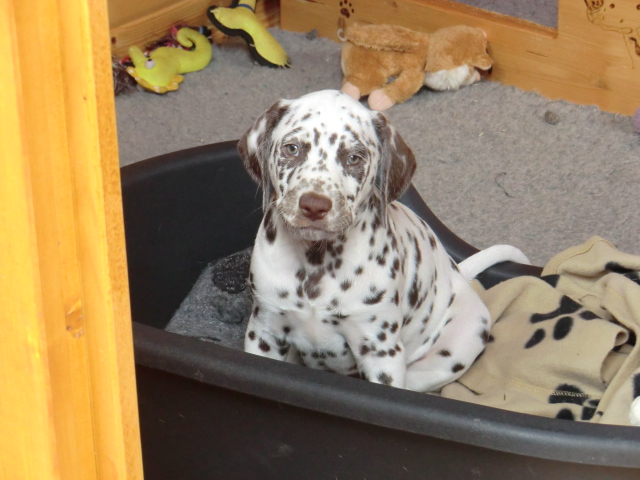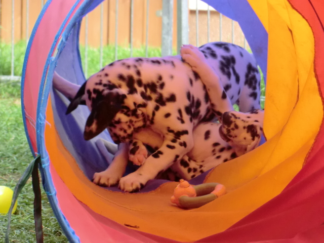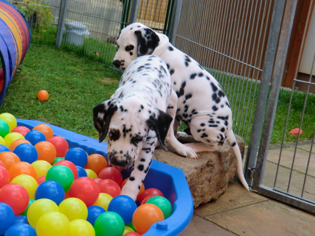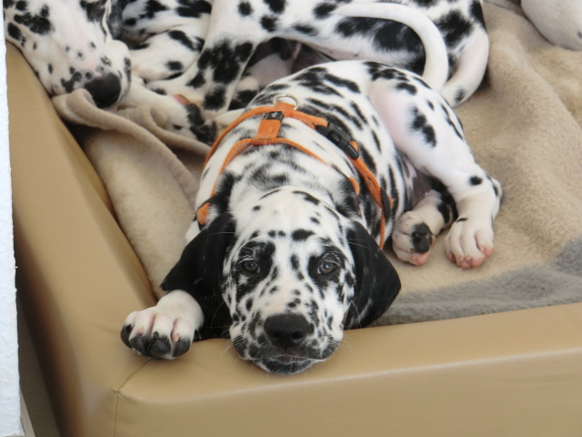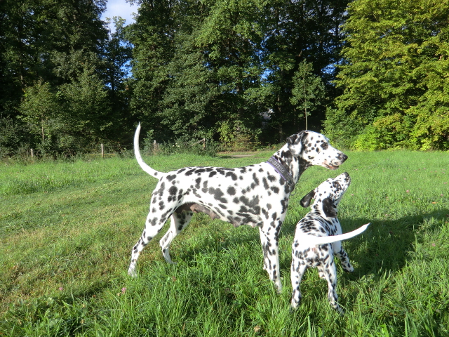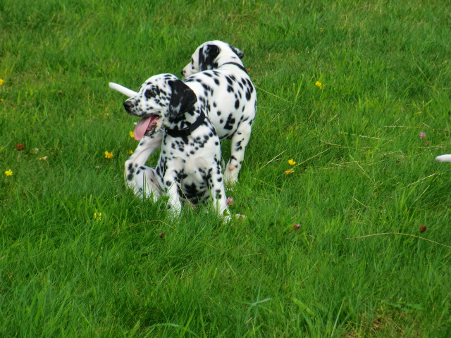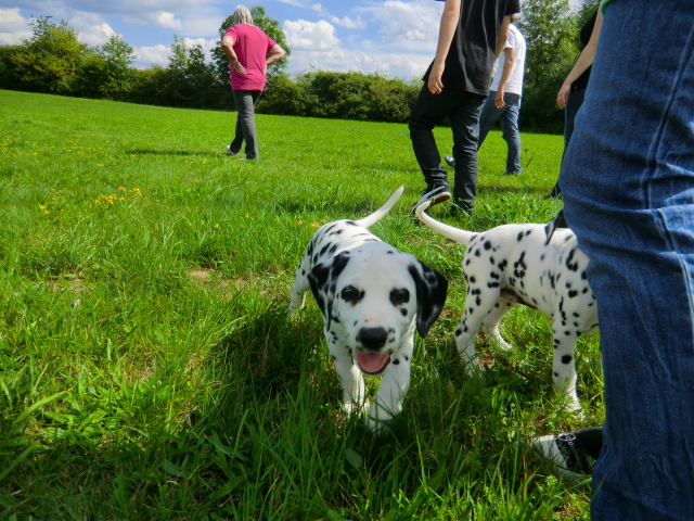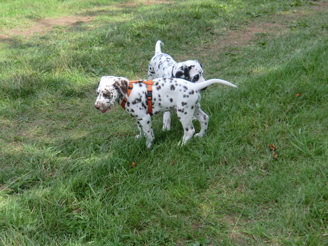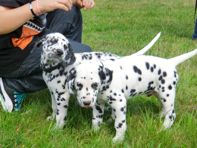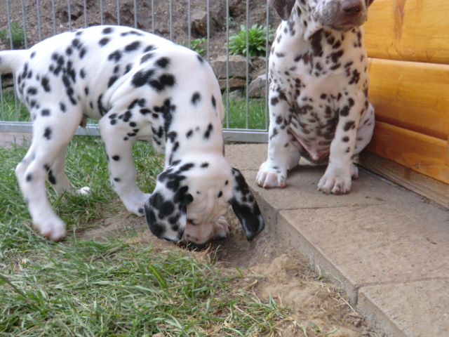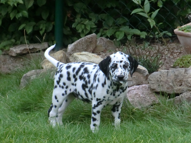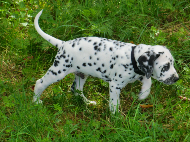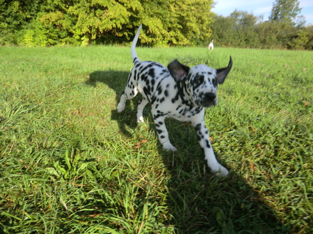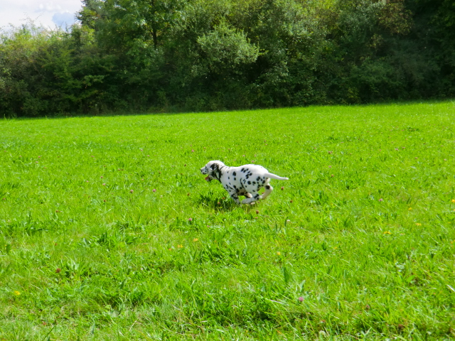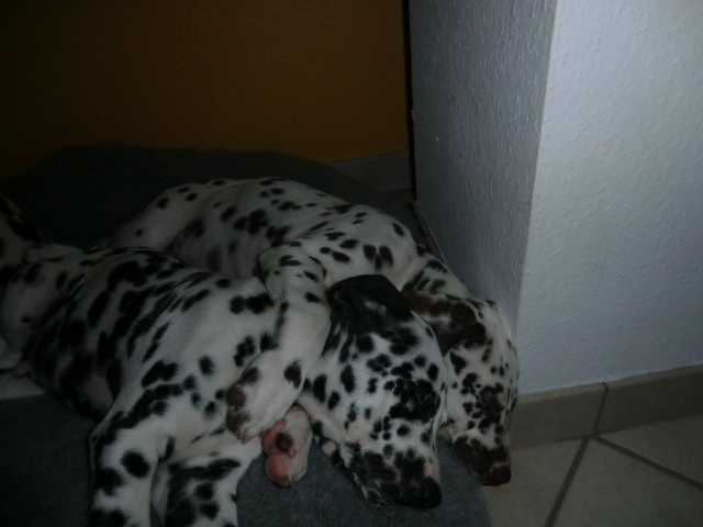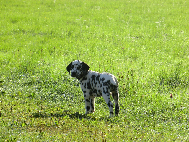 17.08.2011 Die Woche neun beginnt, bedeutet dann auch das oft die ersten Welpen ausziehen. So auch bei uns! Am ersten Auszugstermin haben uns bereits 5 Welpen verlassen. Allegro, Asim, Anton, Amidala und Aron haben heute ihre Köfferchen gepackt und sind in ihre sorgfälltig ausgesuchten Familien gezogen! Doch natürlich gibt es noch ein paar Fotos von allen, sowie auch von den ersten Spaziergängen mit den mini Fleckenzwergen.