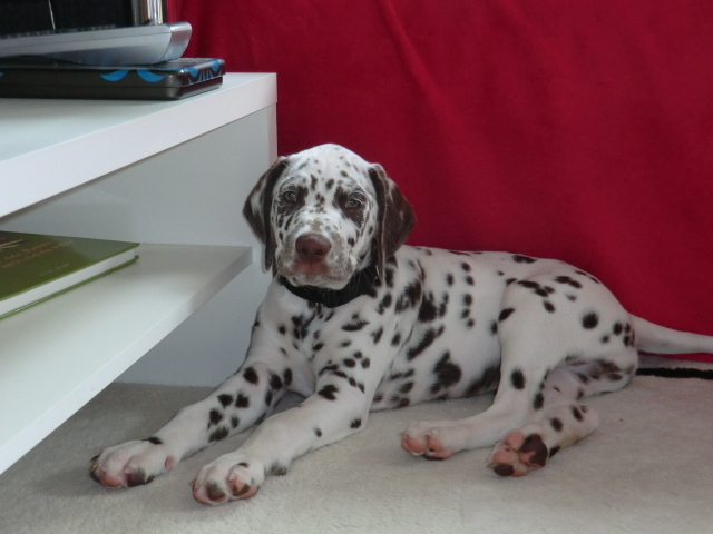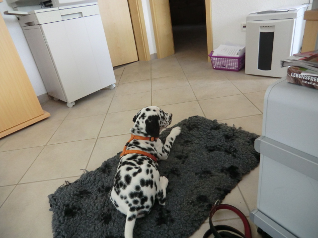 ....oder neben Frauchens Arbeitsplatz, ich werde immer sehr gelobt weil ich so lieb bin!