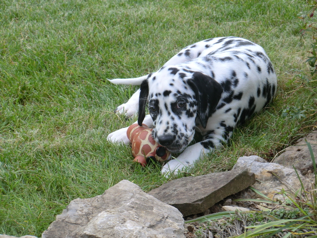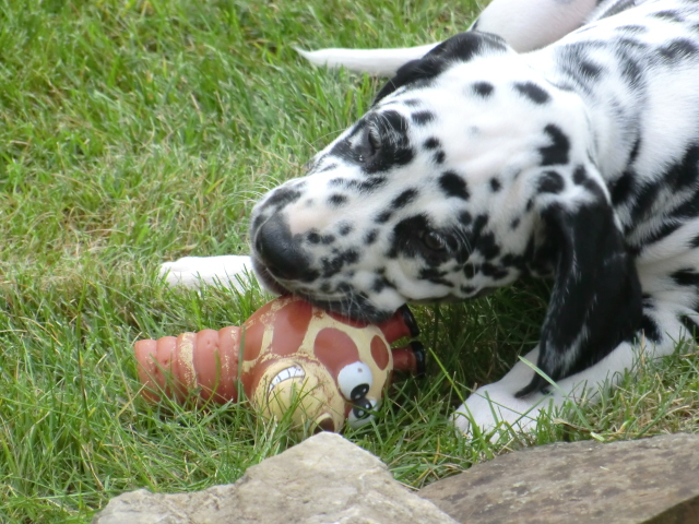 Quincy beim Spielen im Garten