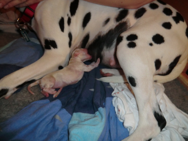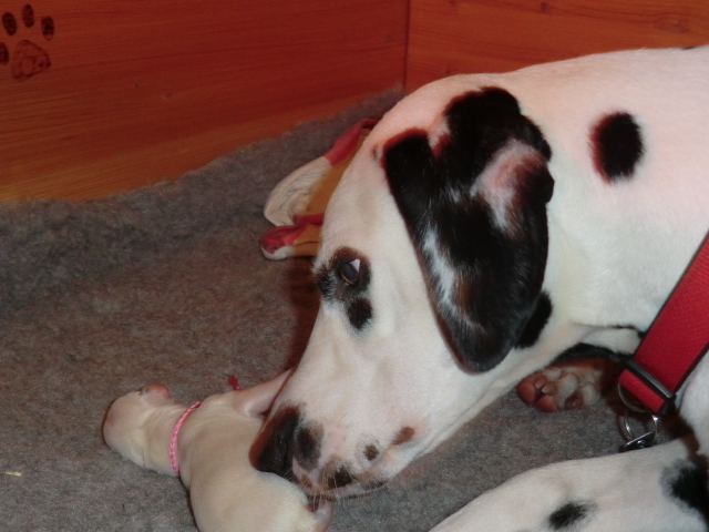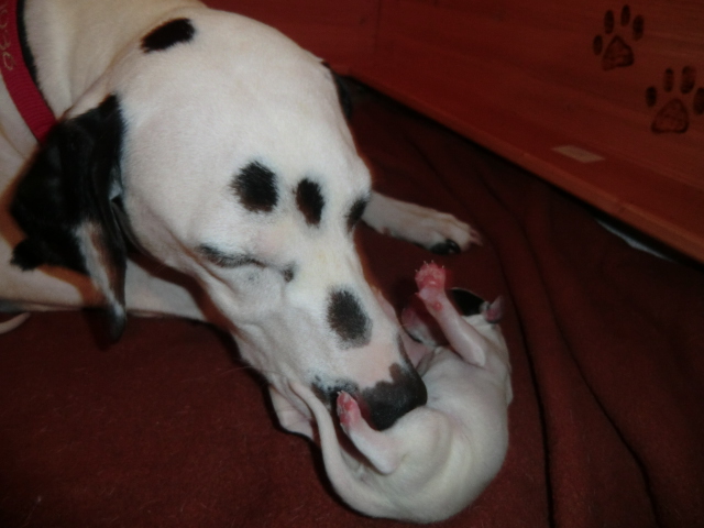 Hier noch ein paar erste Fotos von der Geburt und von der glücklichen jungen Hundefamilie:
