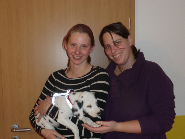 Jana und Monika besuchten uns schon als die A-chen noch unser Leben bereicherten. Es soll eine Hündin sein, das war für die zwei gleich klar. Dalmatiner Erfahrung ist auch vorhanden und das Interesse mal Ausstellungen zu besuchen, sowie dann auch mal eine eigene Zuchtstätte aufzubauen. Schön ist auch das die kleine Zaubermaus nicht so weit entfernt in Nideggen leben wird! Wir werden sie öfters auf Ausstellungen wiedersehen und hoffen das die kleine Basima Antonia alle Wünsche und Träume der beiden erfüllen wird!