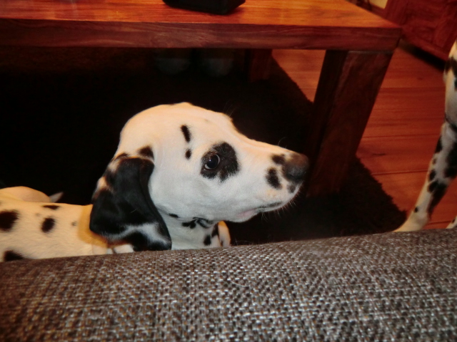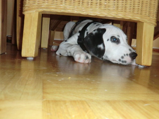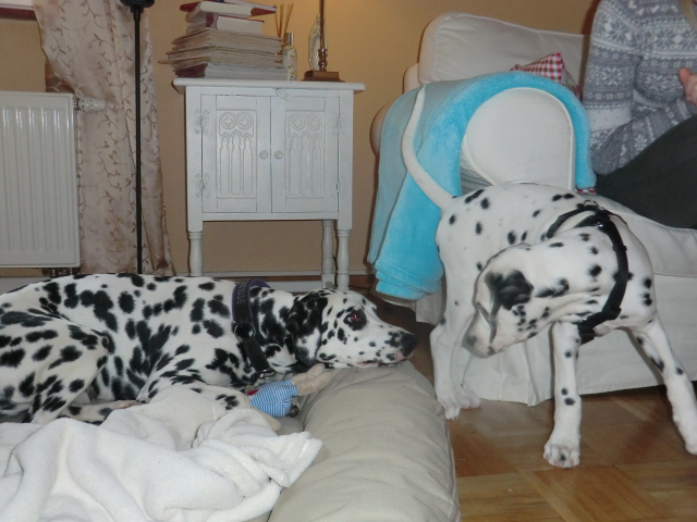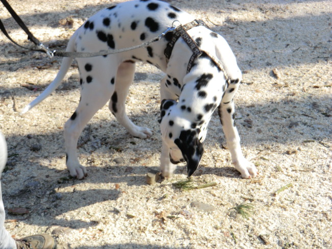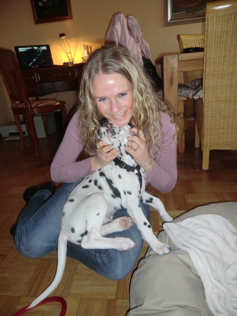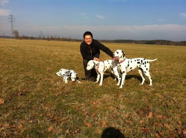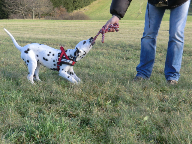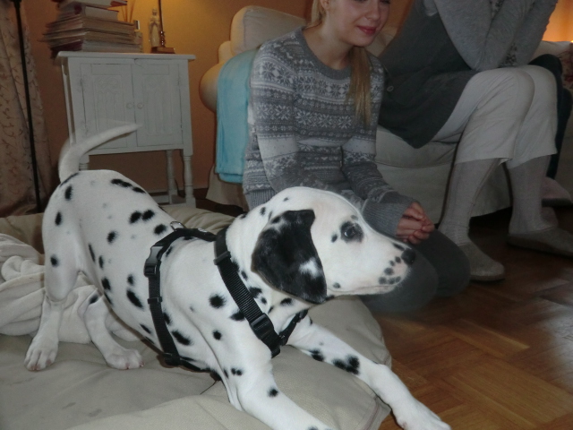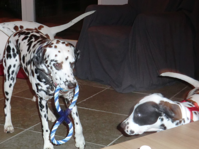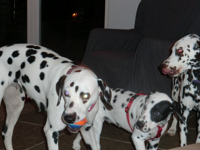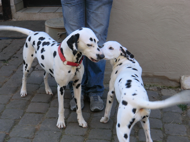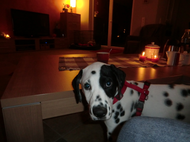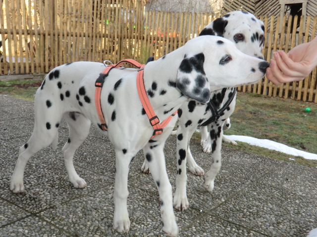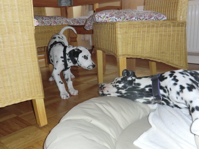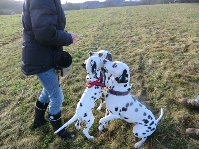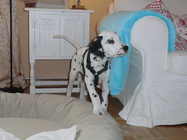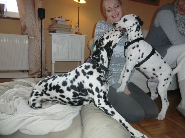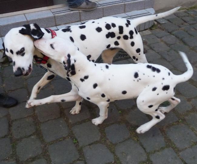 Wir haben Balou Junior auf dem Rückweg von Waldems in seinem neuen Heim in Mayen besucht! Balou ist schon ordendlich gewachsen und ein ganz lieber, aufgeweckter und sehr hübscher Punktemann. In der Hundeschule wo Herrchen und Frauchen vollkommen unvorbereitet hingegangen sind, zeigte er sich als kleiner Streber :-) Auch sonstige Komandos waren sehr schnell verstanden - ein ganz schlaues Kerlchen, wie die Mama Elena & der Papa Balou!