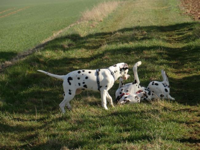 Am Freitag habe ich mich mit Elena auf den Weg nach Nideggen gemacht, um Bella (Basima Anonia) aus unserem B-Wurf und natürlich ihre Familie zu besuchen. Die „kleine“ Bella hat sich ganz toll entwickelt, und ist schon zu einer richtig hübschen jungen Punktedame herangewachsen! Wir haben einen schönen Spaziergang durch du umliegenden Felder unternommen und natürlich einige Fotos gemacht!