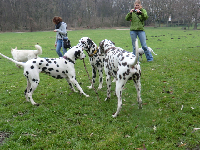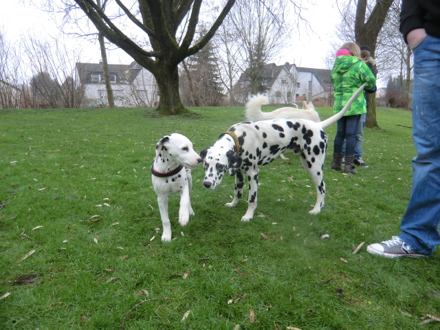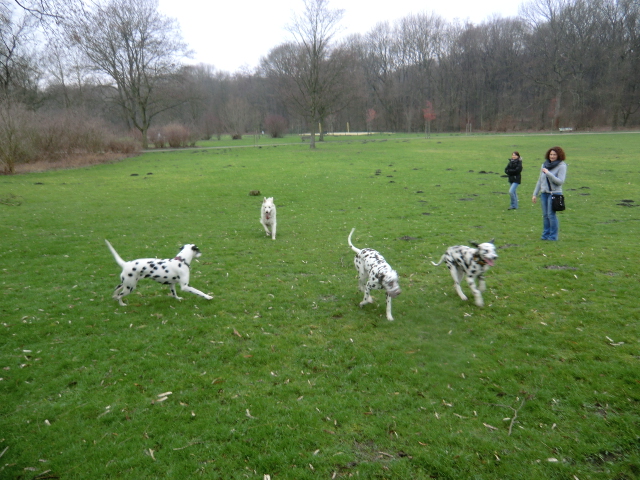 Beim Spaziergang in einem nahegelegenen Park konnten sich die Punktehunde schön austoben!!