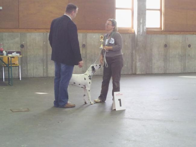 Die hübsche Maya erhielt eine erstklasse Bewertung von der Richterin Susanne Zwillich-Fuchs, und sie hätte ihr auch gerne ein VV gegeben, da sie ihr sehr gut gefiehl. Leider fehlen Maya noch Zähne, und wir hoffen doch sehr, das diese noch durch kommen werden.