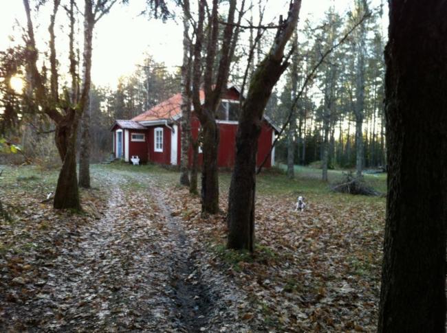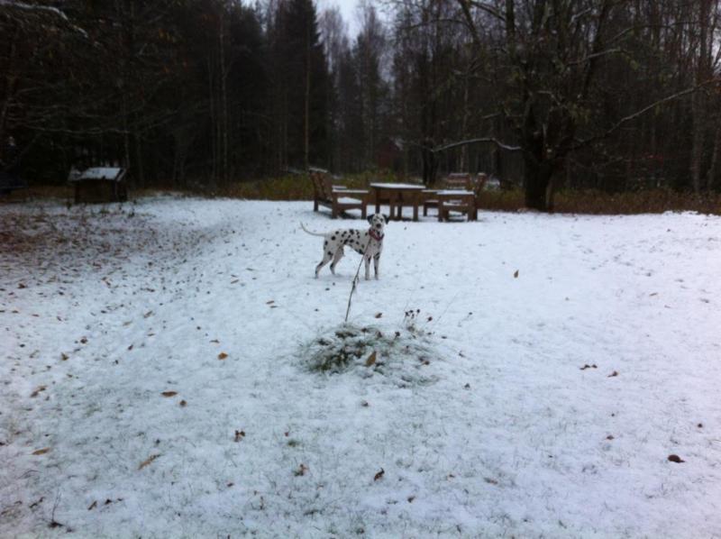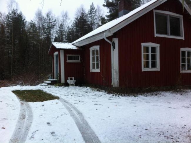 Als wir nach der 1. Nacht morgens aufwachten war alles ziemlich eingeschneit, ein schönes Bild und unser erster Schnee für Herbst/Winter diesen Jahres! Das Auto brachte ich dann vorsichtshalber ins ca. 2,5 km entfernte Dorf, weil wir etwas Bammel hatten einzuschneien und den Berg nicht mehr hochzukommen. Zum Glück schlug das Wetter aber wieder um. Es war recht kalt, mit regen, aber zum Glück kein Schnee mehr. Mein Golf mit Frontantrieb ist nämlich eigentlich gar nicht für den Schwedischen Winter geeignet....