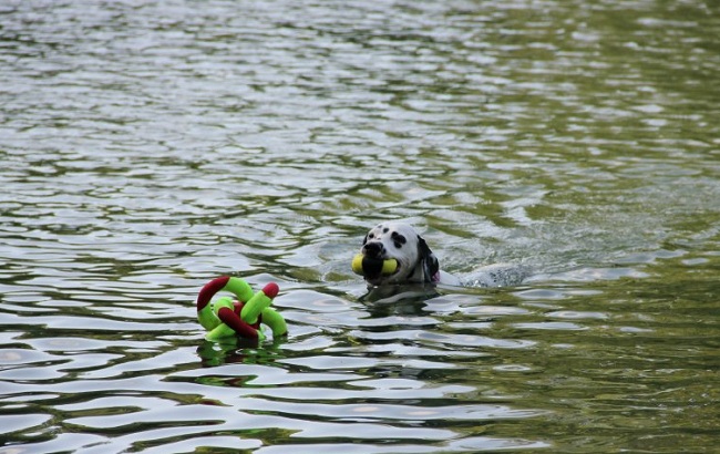 So viel und weit im Wasser war er vorher noch nicht. Dabei hat Pongo Wasser zum Fressen gern!