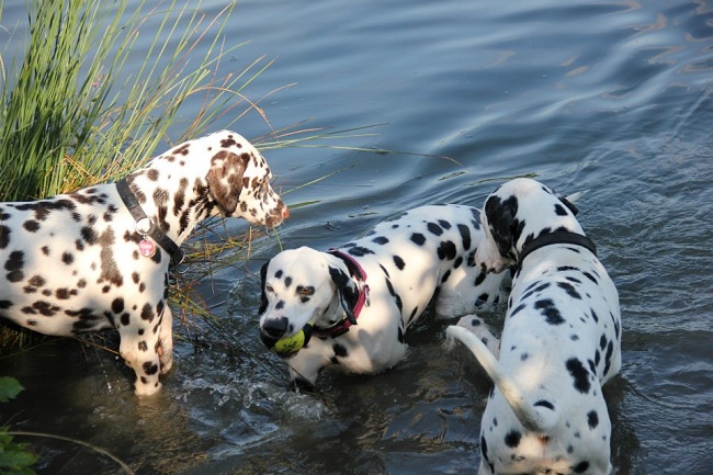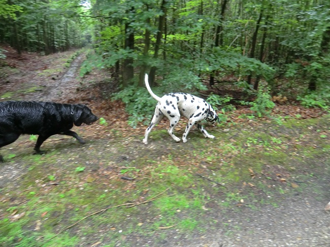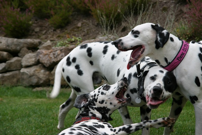 Mit dabei war Elenas hübscher Sohn "Bruce Lee" oder einfach LEE und diesmal auch Alinas geliebter Sohn Anton. Mehrere haben leider kurzfristig abgesagt, aber so hatten wir eine schöne kleine ausgeglichene Jungs & Mädels Gruppe und die vier Tupfen hatten eine Menge Spaß! Zuerst mussten wir noch ein bisschen auf Anton warten, und Lee, Elena & Alina haben solange im Garten gespielt. Im Anschluss ging es dann zur Steinbachtalsperre. Hier konnte nach Dalmi-Herzenslust gerannt, gespielt und getobt werden! Einem kleinen Bach statteten wir auch einen kleinen Besuch ab, aber zum Schwimmen in der Talsperre wäre es mit zwar schönem Sonnenschein, aber nur 16/17 Grad wohl etwas zu kühl gewesen - auch wenn Elena das wohl nichts ausgemacht hätte ;-)