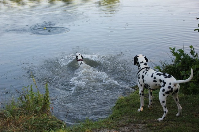 Charly schaut sich ganz genau an wie das geht mit dem Schwimmen.....kann ja nicht so schwer sein..