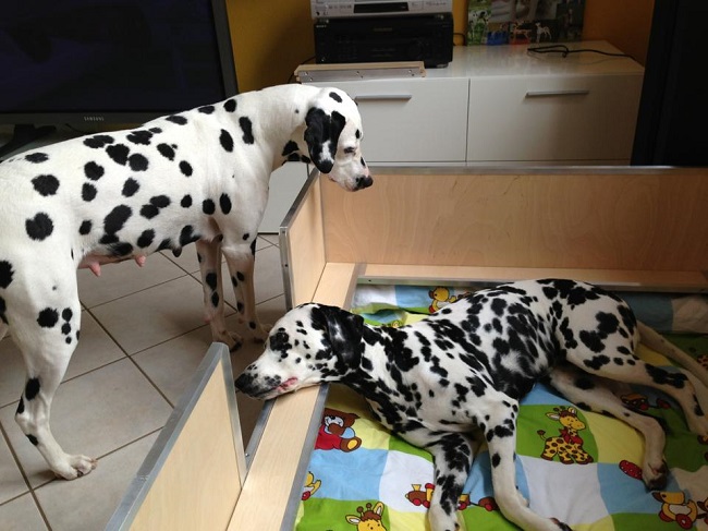 Die 7. Trächtigkeitswoche neigt sich dem Ende entgegen. Elena geht es nach wie vor sehr gut! Ihr Hunger ist ungebrochen, und mittlerweile hat sie den Schwangerschaftsblick perfektioniert! Die kleinen C-chen machen sich seit einigen Tagen auch spürbar bemerkbar und die kleinen Pfötchen der C-chen oder auch mal Po & Kopf stemmen gegen die Bauchdecke! Ein ganz tolles Gefühl und ich verbringe Stunden gemeinsam mit Elena in der Wurfkiste zu liegen, ihren Bauch zu krabbeln und den kleinen Tritten zu lauschen. Jetzt sind es nur noch 2 Wochen bis zur Geburt!! Elenas Bauchumfang liegt jetzt bereits bei über 80 cm! Die Vorbereitungen und Besorgungen sind abgeschlossen. Die ersten Welpenhalsbänder aus Wolle und auch sonstige Utensilien für die Geburt liegen bereit. Wir freuen uns riesig und zählen die Tage! Wir hoffen sehr diesmal auch wieder einige weiß/braun gefleckte Welpen begrüßen zu können – es bleibt spannend!