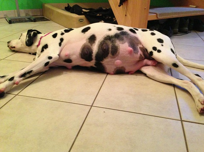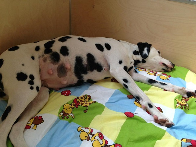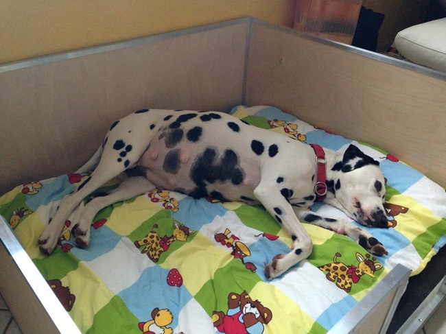 9. Woche | Möglicherweise hat die Hündin keine Appetit mehr, wenn die Zeit der Niederkunft naht. |