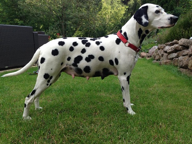 5. Woche | Die Hündin hört auf, die Beine anzuziehen, weil das Gewicht ansteigt und die Welpen sich drehen. Das Anschwellen der weiblichen Scham wird merkbarer. Bitte achten Sie auf das Gewicht der Hündin und überfüttern Sie nicht. Die Herzschlag ist aufgrund der ansteigenden Flüssigkeit in der Gebärmutter nicht mehr länger als Diagnosemethode nutzbar. |