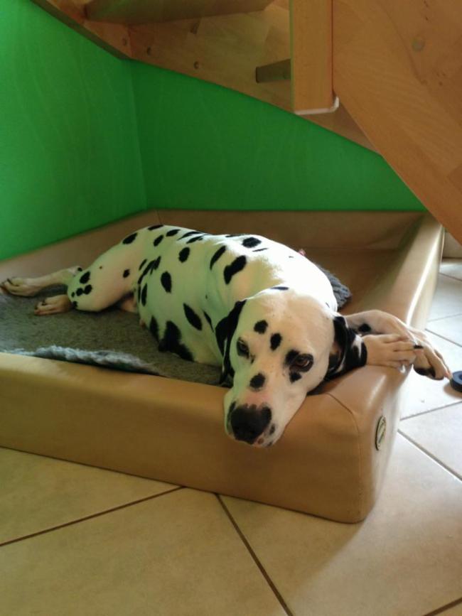 Heute sollte Elena nochmal auf die Waage gestellt werden! 😊 Also machten wir uns auf den Weg zum Tierarzt hier in Bad Münstereifel - natürlich nicht mit dem Auto, da unsere süße dicke Punktekugel nicht mehr so gut "Transportfähig" ist. Die Waage zeigte, was sie bei dem "Bäuchlein" zeigen musste: Elena bringt ziemlich genau 31,1 kg auf die Waage! Das sind 6,3 kg mehr als vor dem Date mit Ole und es sind noch ca. 12 Tage bis zur Geburt der C-chen!