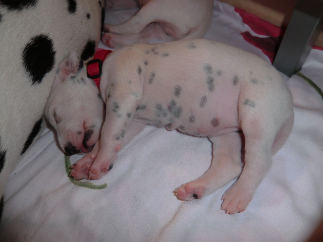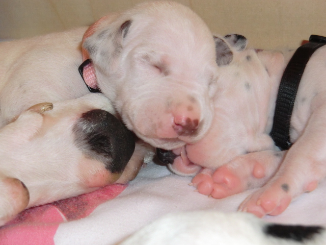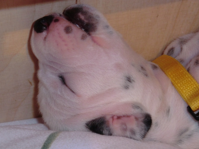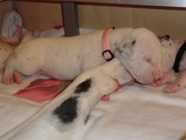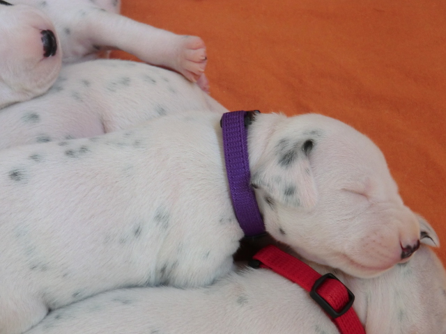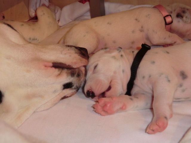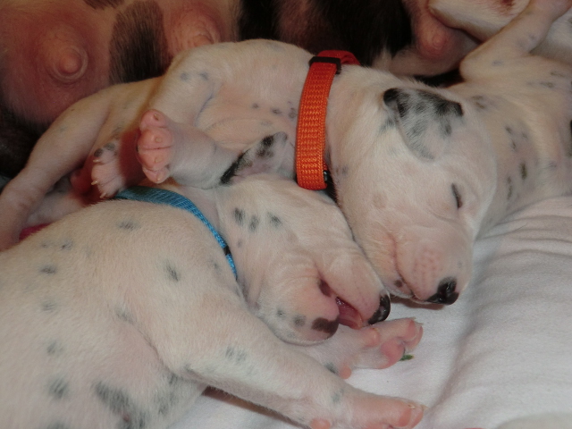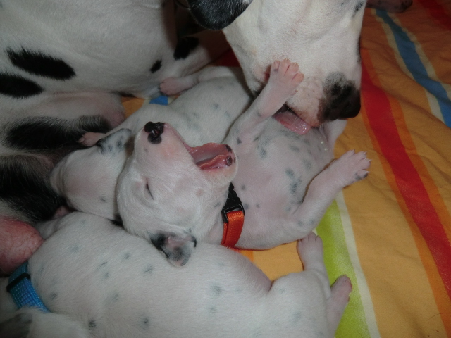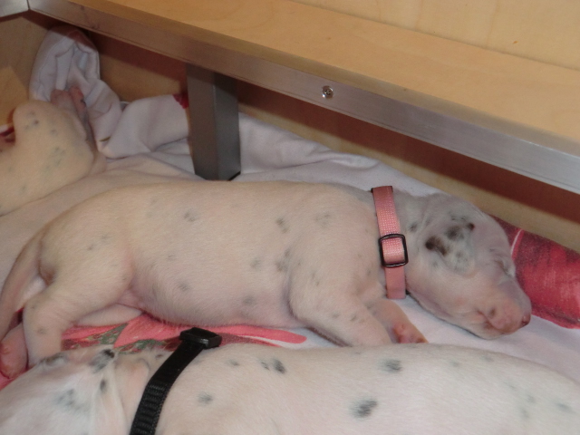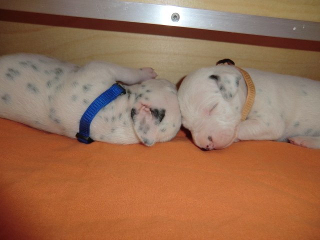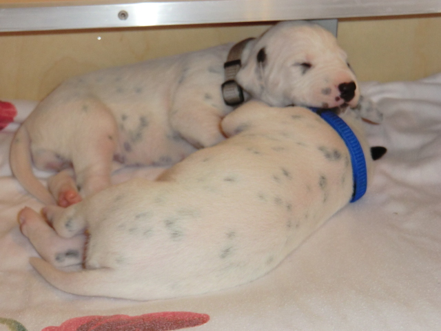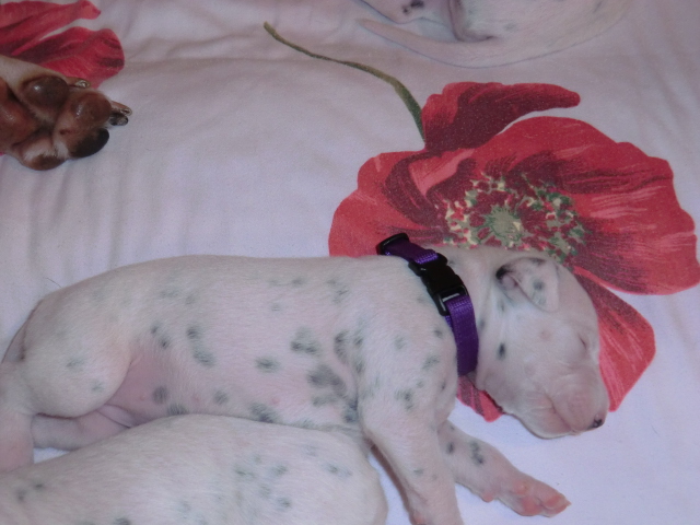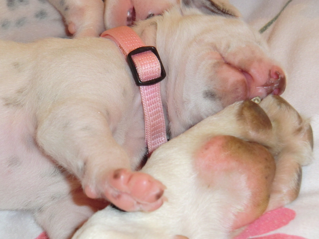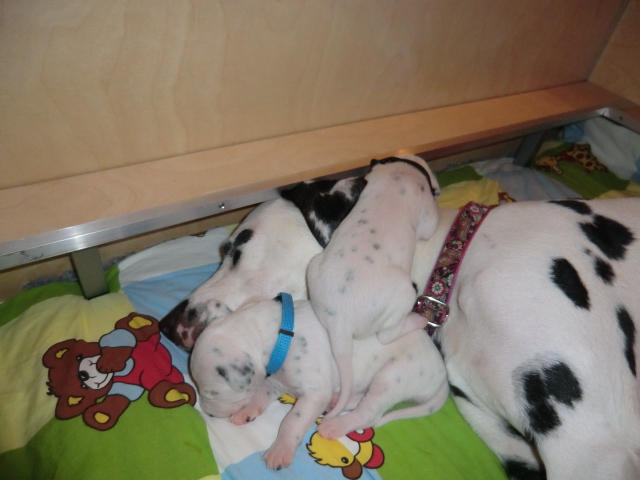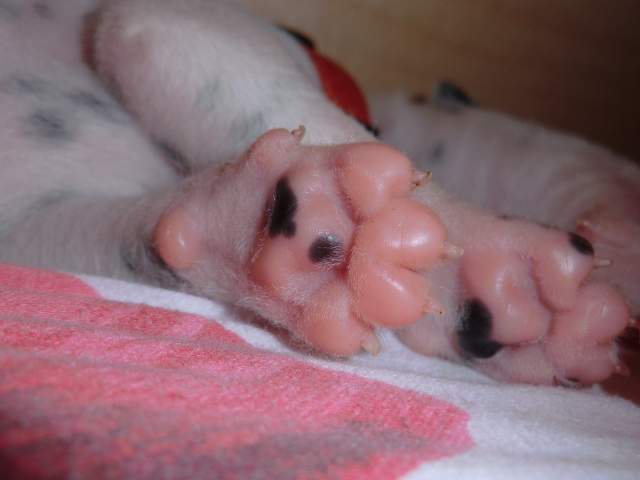 Die 2. Woche ist wohl mit einer der ereignisreichsten! Die Augen öffnen sich bei den Zwergen - unser Herr Blau machte den Anfang am 8. Tag und alle weiteren Geschwister folgten zügig! Wir sind uns ziemlich sicher das alle Welpen braune Augen haben! Die 1. Wurmkur stand auf dem Speiseplan der C-chen....diese wurde mit grimmigen Gesichtsausdruck genommen ;-) was sein muss muss sein...