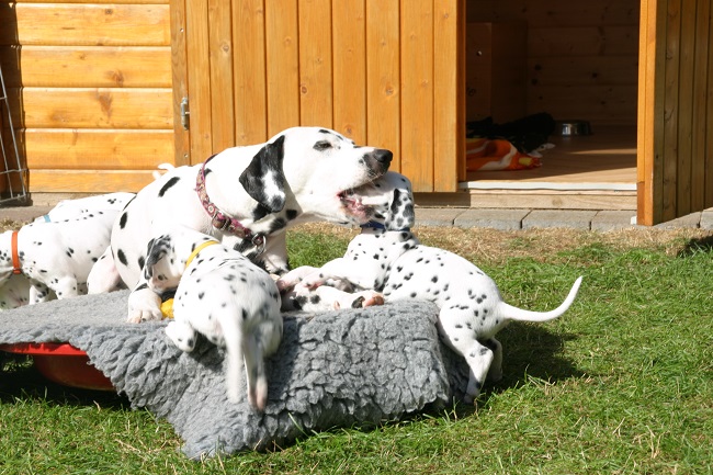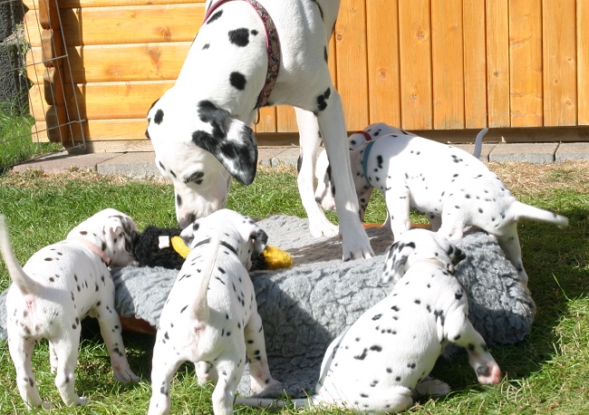 Der Start in die 6. Woche war wieder geprägt von täglich gaaaannnz viel Besuch! Diesmal waren besonders viele Kinder hier und haben mit den kleinen gespielt und im Welpenhaus gekuschelt! Die C-chen waren begeistert von den "kleinen Menschen" und auch von den ersten vierbeinigen Besuchern! Alle sind absolut unerschrocken und bisher konnte sie nichts aus der Ruhe bringen!