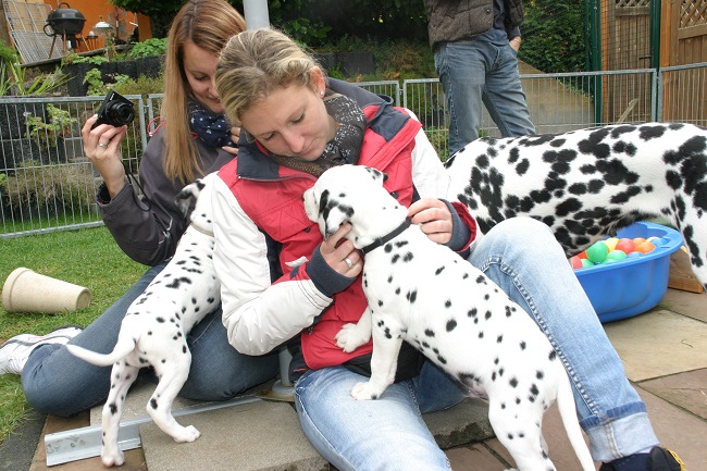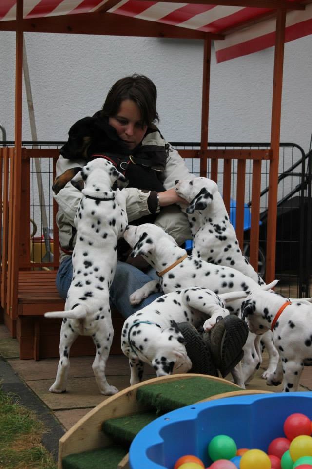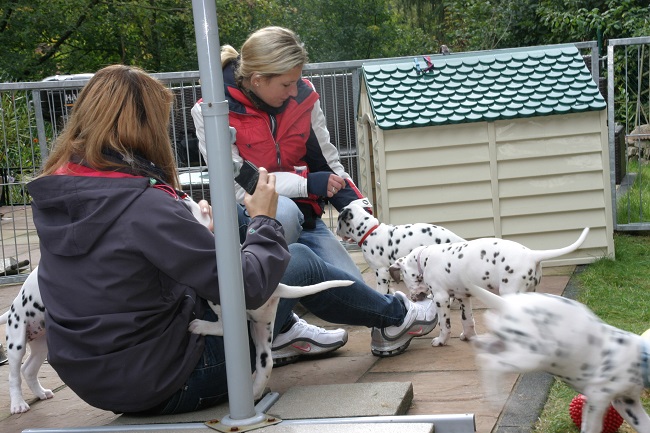 Am Samstag haben uns Andrea, Sarah mit Kiro & Snoop, Jenny, Markus mit Emma (aus unserem B-Wurf) & klein Nelly, Susanne mit Amy (aus unserem A-Wurf), sowie Monique und Niko mit Charly (ebenfalls aus unserem A-Wurf besucht! Zuerst wurden die C-chen ordentlich geknuddelt, und dann ging es eine große Runde mit den erwachsenen Hunden durch die schöne Eifellandschaft. Wieder zurück durften auch die Vierbeiner mit zu den C-chen! Die hatten großen Spaß an den unbekannten Hunden, und es war sehr schön zu sehen, wie offen und freundlich die Welpen auf neue Menschen & fremde Hunde zugehen!