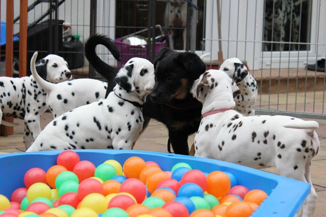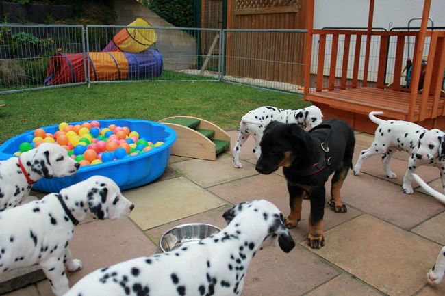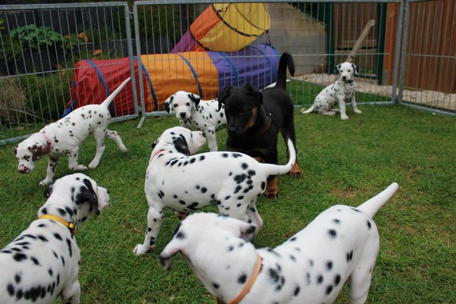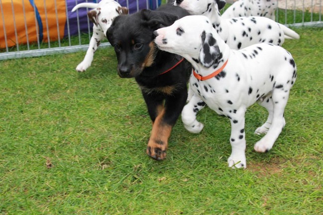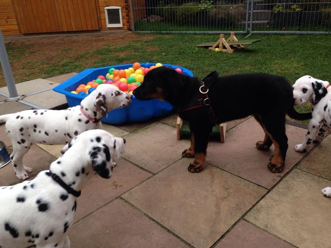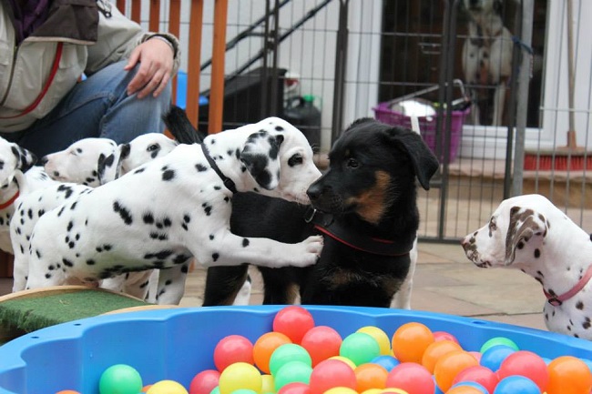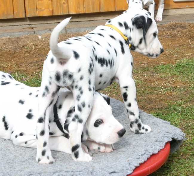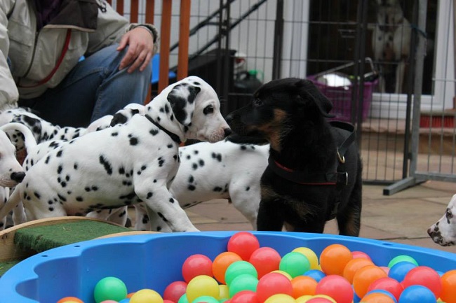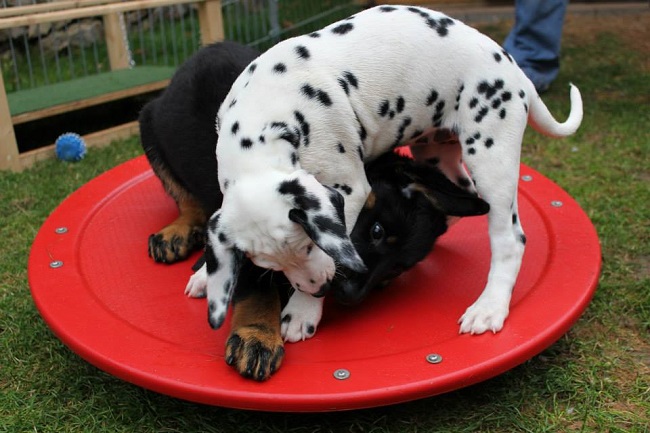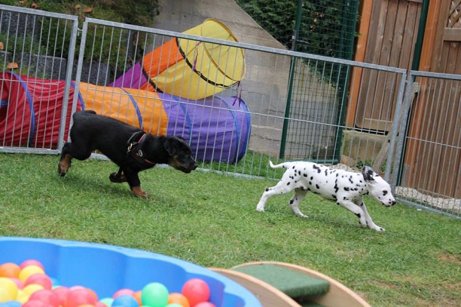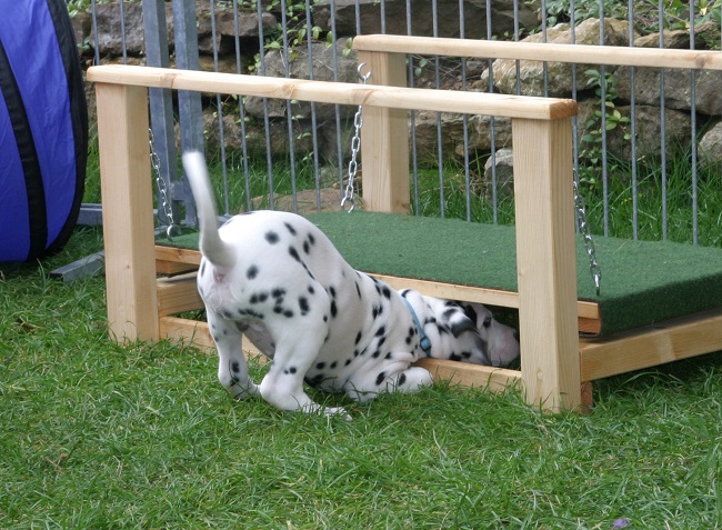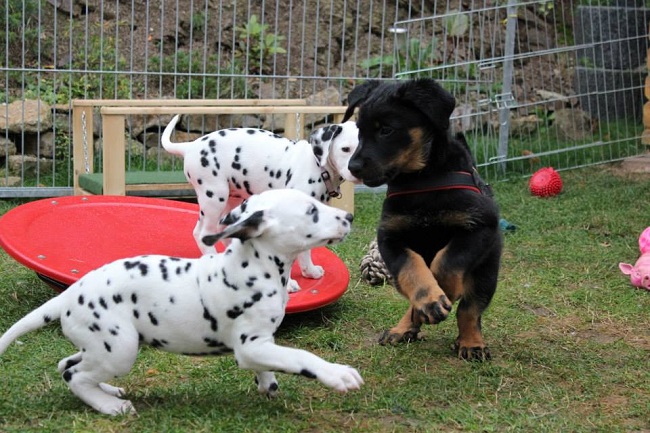 Der Platz auf dem Karussell ist bei allen Welpen sehr beliebt!