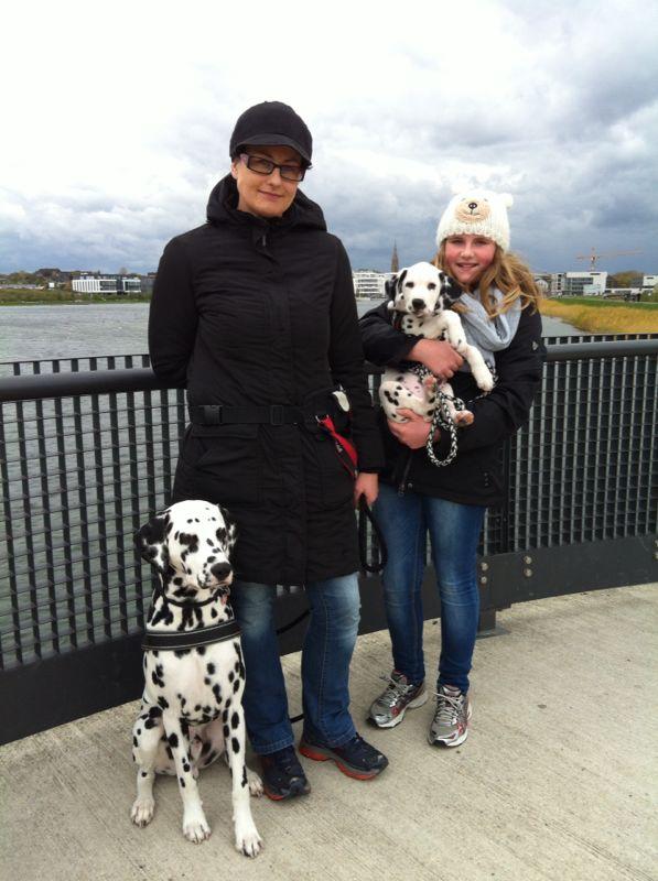 Der Trend geht nicht nur zum zweiten Dalmatiner, sondern auch zum zweiten "Eifeldalmatiner"! Nachdem 2011 bei Nadine, Andy & Jennifer bereits A-chen Anton in Schwerte eingezogen ist, war klar irgendwann soll Anton gefleckte Gesellschaft bekommen! Eigentlich war es nicht geplant, aber nach einigen Besuchen der C-chen war der Wunsch groß eine der hübschen Ladys zu "entführen" ;-) Nachdem unsere "Frau Rot" nicht wie geplant in ihre Familie ziehen konnte, war für Nadine klar: "Cherry Diva Deluxe" muss zu ihnen nach Schwerte ziehen! Wir freuen uns sehr für die hübsche Maus ein so schönes Zuhause bei Freunden gefunden zu haben! Sie hört bereits auf den Namen "Kimberly"!