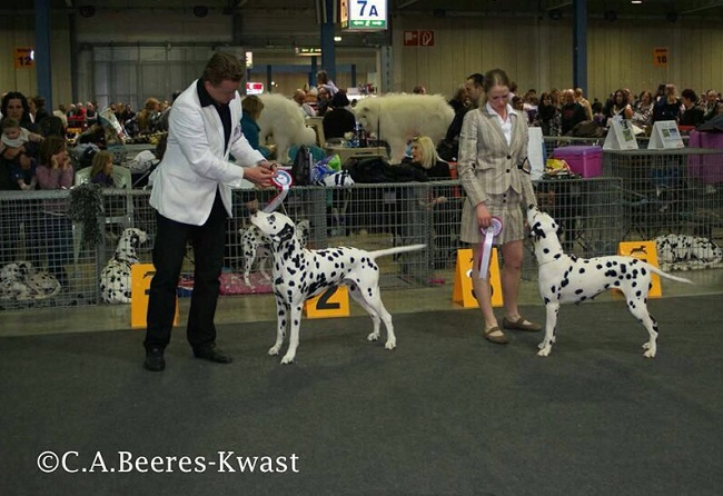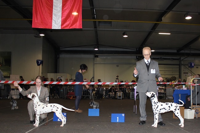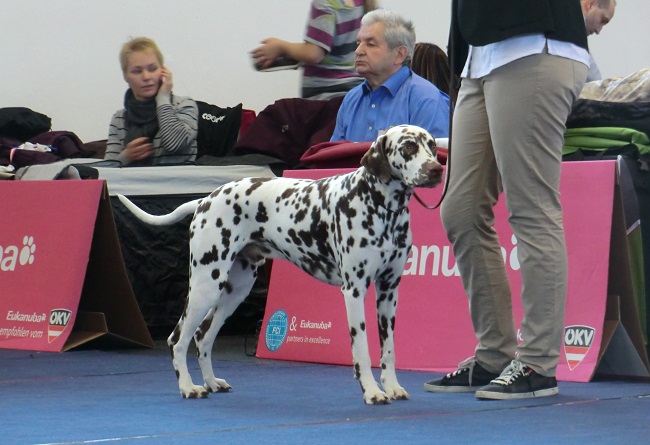Am 30. März waren wir auf der Internationalen Ausstellung in Luxemburg. Elena und ihre Kinder Titus (Charming Lover Boy) & Bailey (Chocolate Coconut Kiss) waren gemeldet. Unsere Dalmis richtete Rolf Blessing aus Deutschland.