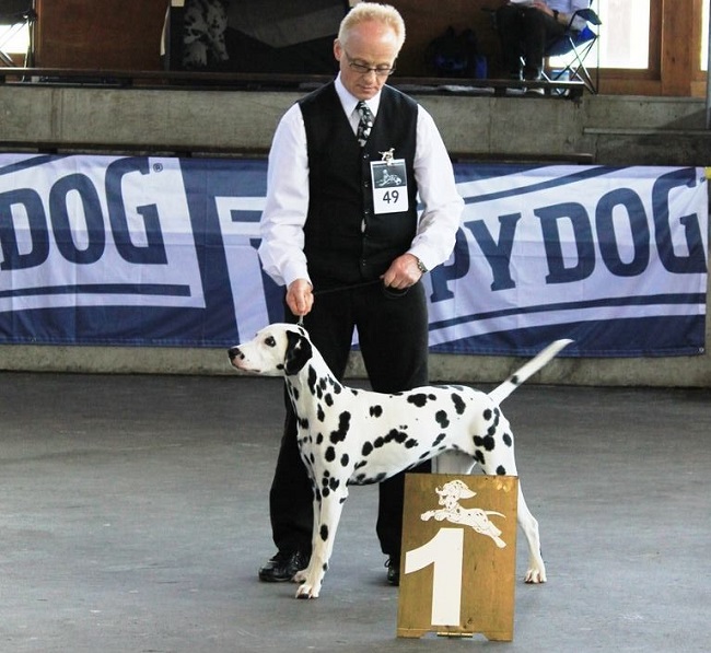 Am 2. Tag richtete Martin Klopsch die Dalmatiner, und Aline gewann die Jüngstenklasse mit vielversprechend 1! Herzlichen Glückwunsch, super gemacht!!