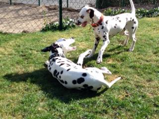 Da die Dalmatiner schon früh fertig waren, machte ich mich mit den Mädels schnell auf den Heimweg, um den Tag noch draußen mit den Hunden nutzen zu können. Jürgen & Anita mussten mit Aline noch etwas bleiben, schließlich sollte die hübsche noch in den Ehrenring!