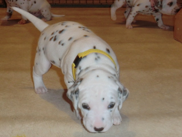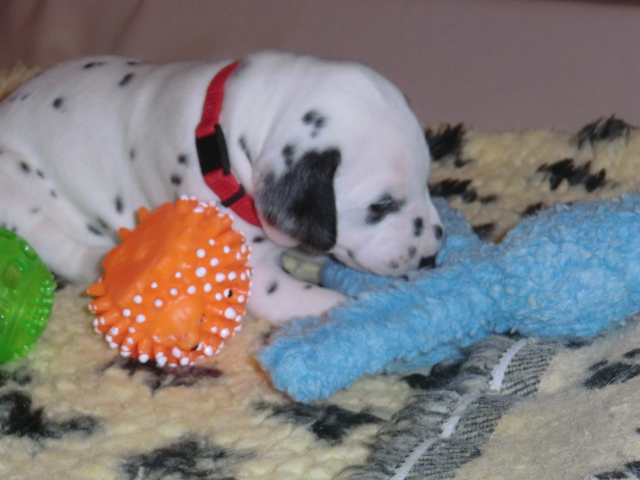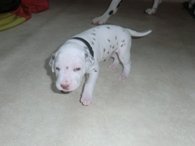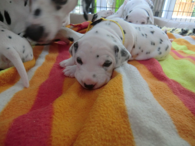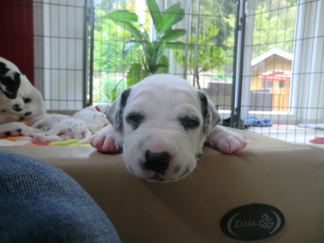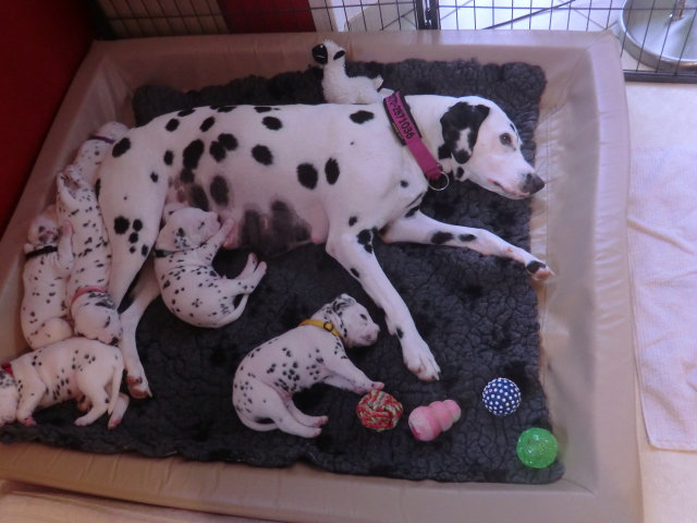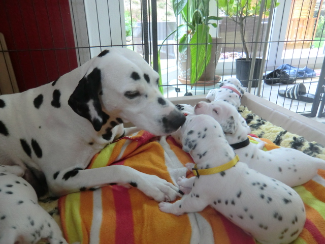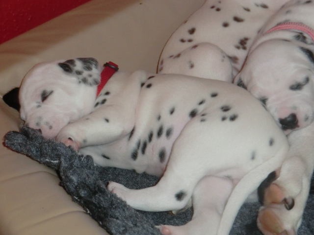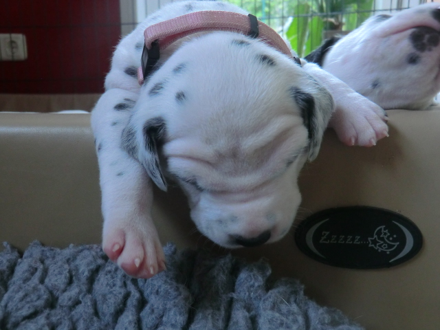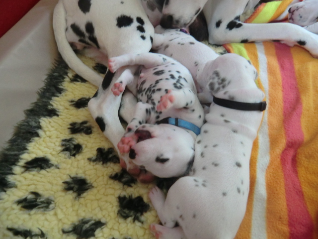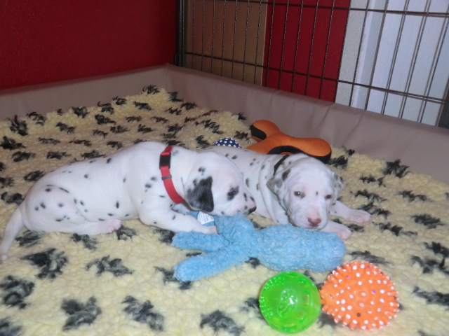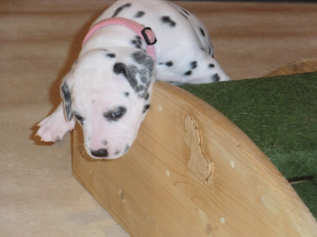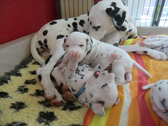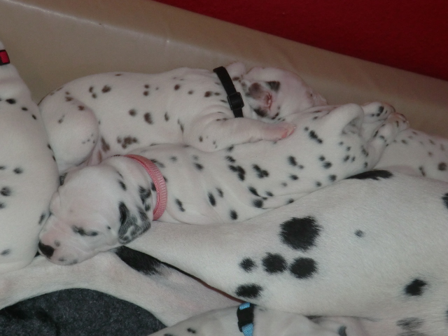 Eine ganz besonders spannende Woche für unsere D-chen, denn der 1. Umzug stand auf dem Programm. Unser Wohnzimmer verwandelte sich nämlich zu einem Welpenauslauf, damit wir auch dem immer größeren Bewegungs- und Forscherdrang der Fleckenzwerge gerecht werden. Sehr neugierig und mit großer Begeisterung wurde das neue Domizil und die ersten Spielsachen angenommen!
