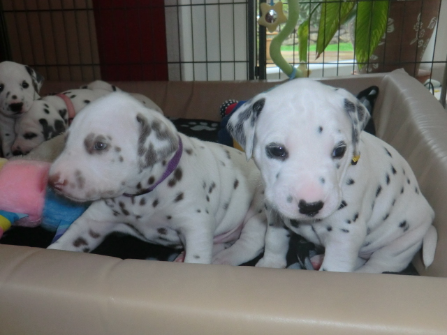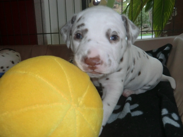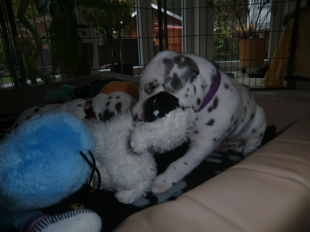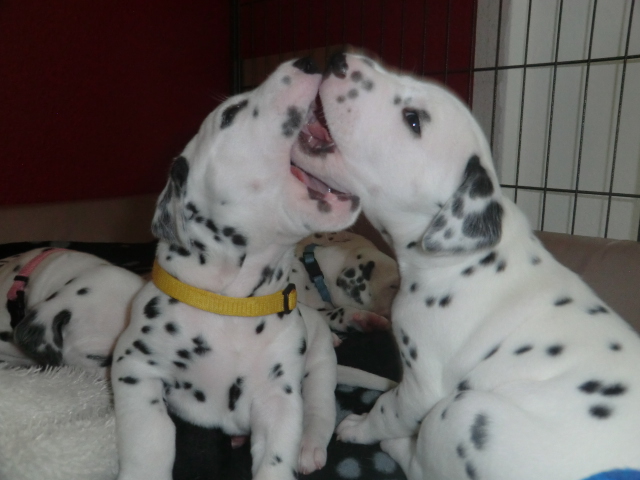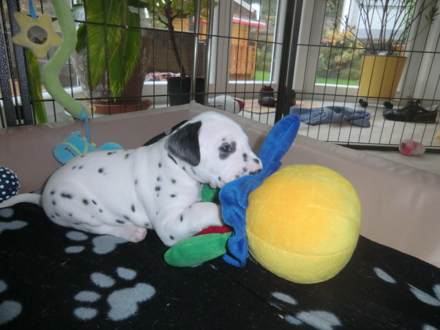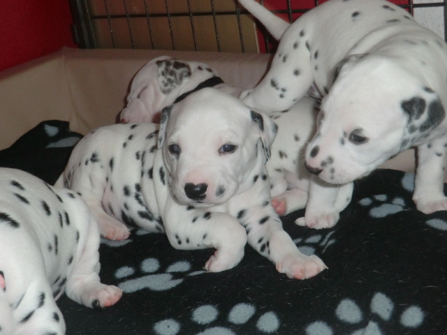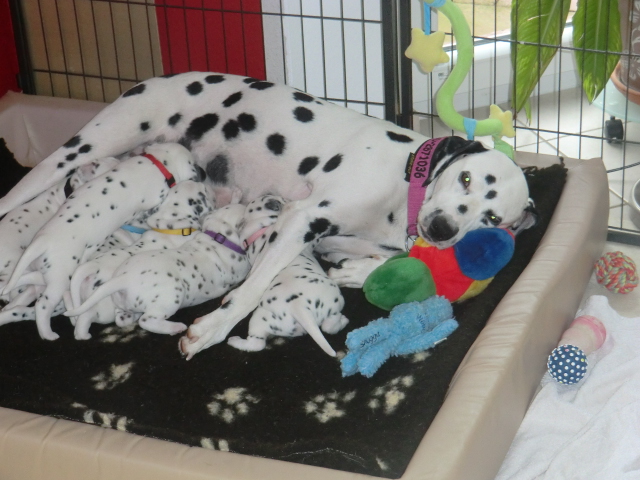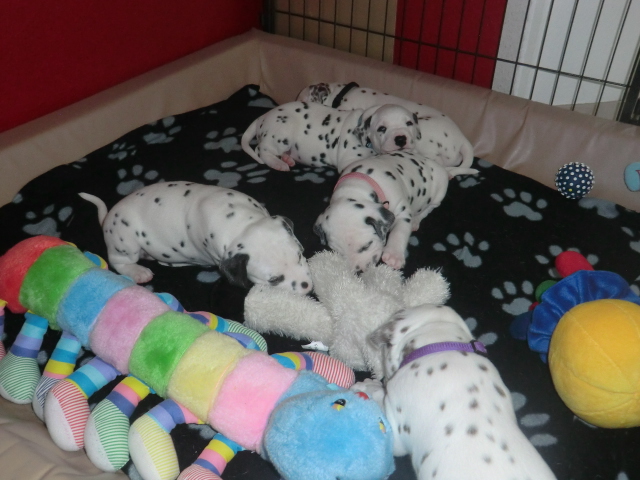 Der Beginn der 4. Woche war für unsere D-chen seeeehhr aufregend und ereignisreich! Viele Besucher hatten sich auf den Weg zu uns nach Bad Münstereifel gemacht, um unsere D-chen und demnach ihr zukünftiges neues Familienmitglied kennenzulernen. Die D-chen zeigten sich alle - wenn sie nicht gerade geschlafen haben ;-) - sehr aufgeschlossen und neugierig und inspizierten die neuen Zweibeiner genau. Alle waren begeistert von unseren "Minipünktchen" und auch von der Mama Elena, die sich durchweg sehr gelassen zeigte, dafür das so viele ihr unbekannte Menschen ihren Nachwuchs in Augenschein und auf den Arm genommen haben.