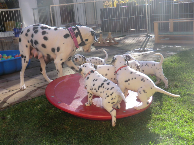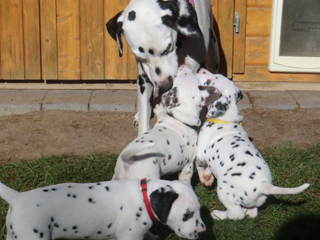 01.11.2015 Mit etwas Verspätung gibt es endlich aktuelle Fotos unserer D-chen aus der 5. Woche. Die kleinen sind nun endlich in ihr neues Reich umgezogen und bereits ordentlich gewachsen. Sie hatten viel Besuch und alle waren ausnahmslos begeistert von unseren Punktekindern und auch von Mama Elena die einfach nur ganz entspannt ist.