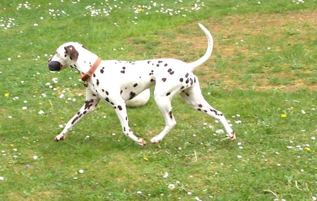 Sie hat eine sehr schöne, gleichmäßig verteilte dunkelbraune Fleckung auf rein weißem Fell, einen festen geraden Rücken und besitzt ein raumgreifendes, fehlerfreies Gangwerk.