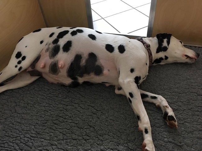 9. Woche | Möglicherweise hat die Hündin keine Appetit mehr, wenn die Zeit der Niederkunft naht. |