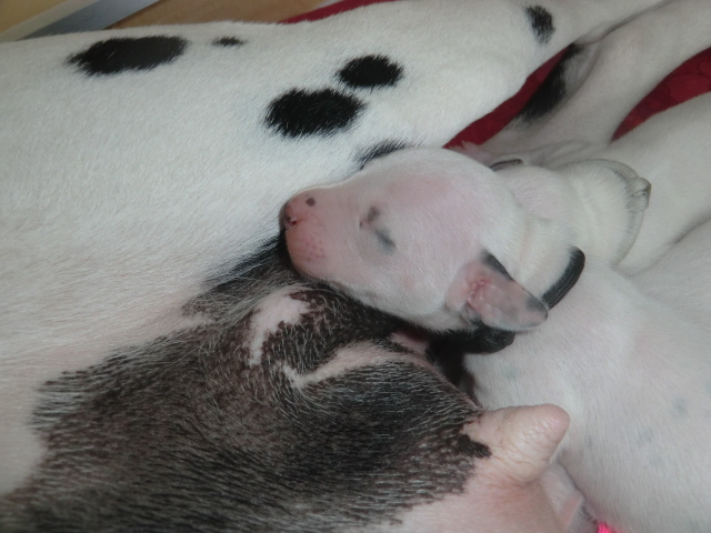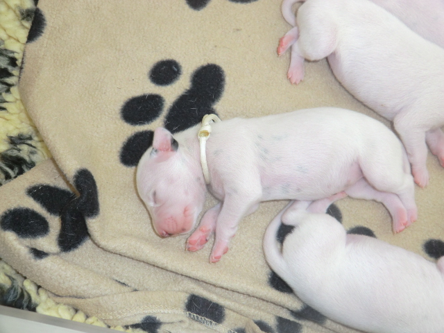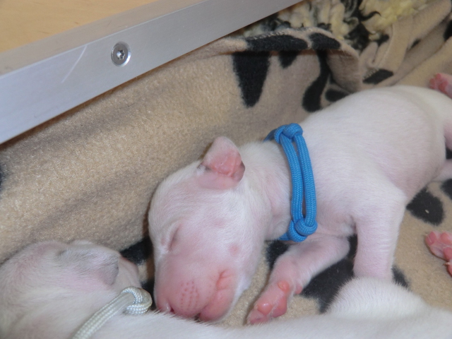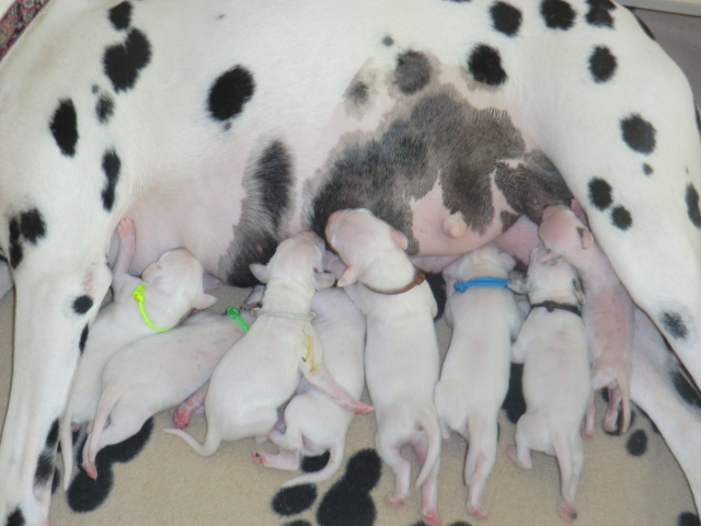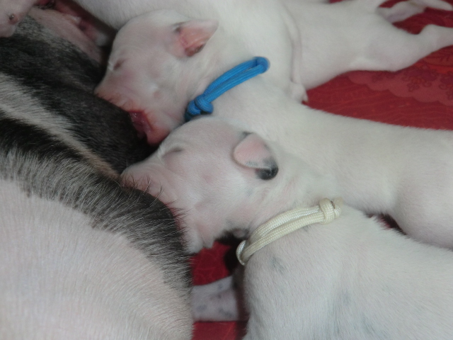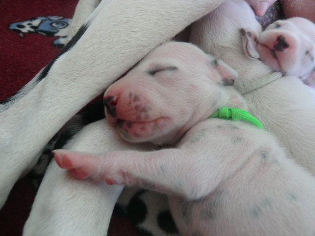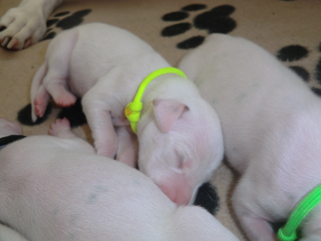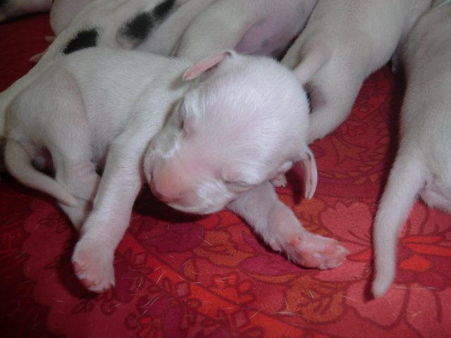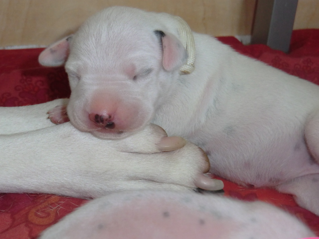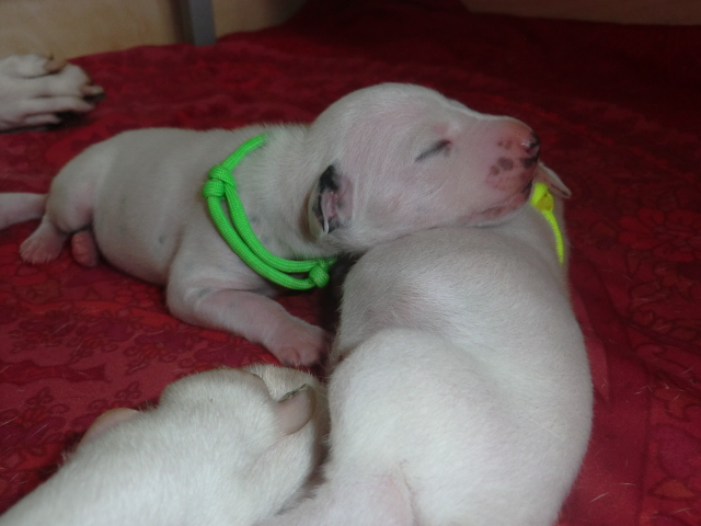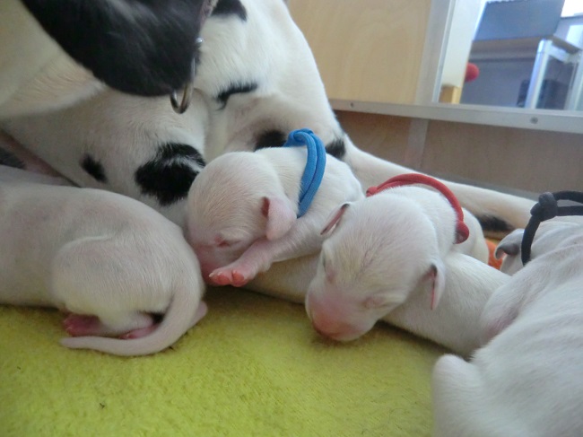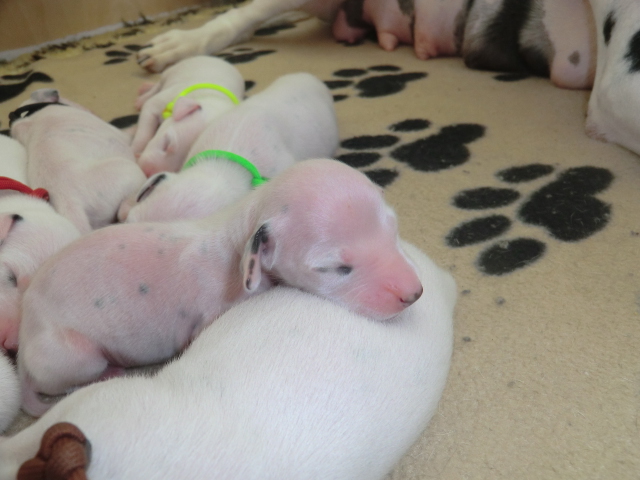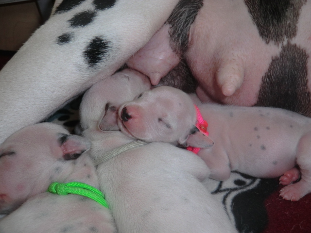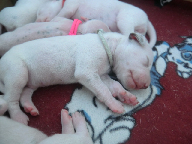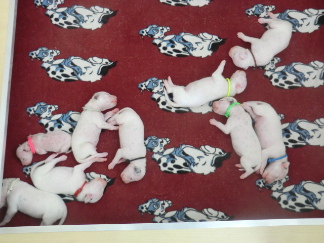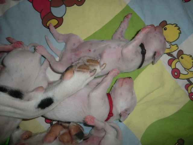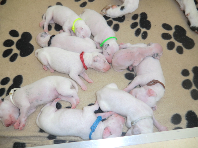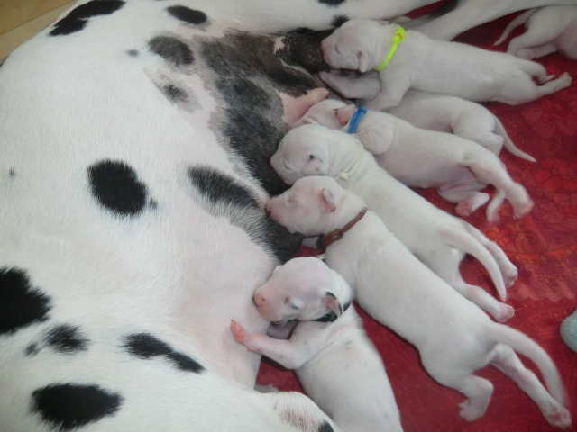 6 Tage sind die F-chen jetzt schon alt und alle entwickeln sich zu unserer absoluten Zufriedenheit. Heute war unsere Zuchtwartin vom CDF hier und auch sie war sehr zufrieden mit der Rasselbande und Mama Elena.
