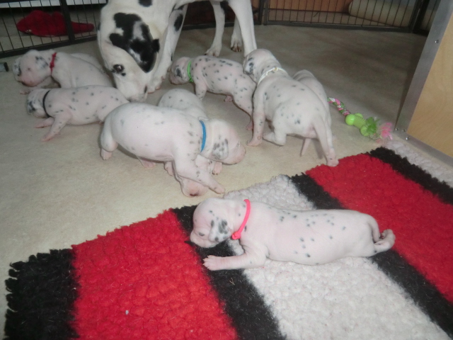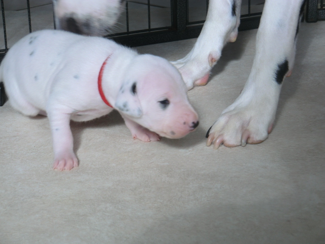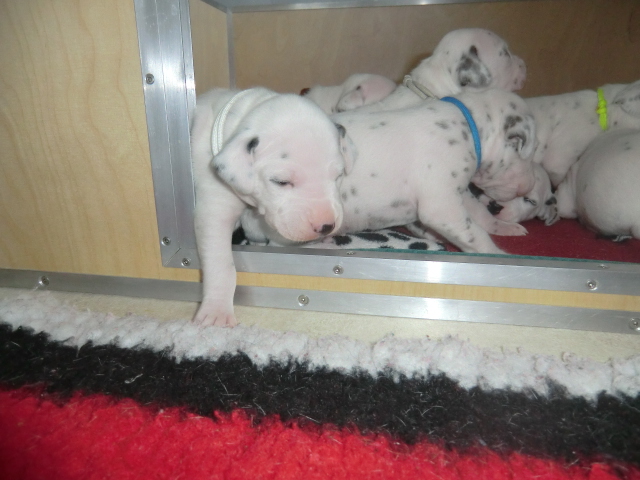 Nachdem fast alle F-chen die Augen geöffnet haben wollen sie natürlich ihre Umgebung erkunden. Frau Weiß und Frau Rot zeigten uns mit ihrem "Ausbruch" aus der Wurfkiste das es Zeit für den ersten Indoor-Auslauf ist. Erste Kontaktaufnahme und Spiele unter den Geschwistern sind zu beobachten - ich könnte den ganzen Tag vor der Wurfkiste sitzen und den süßen zusehen! :-D