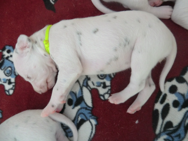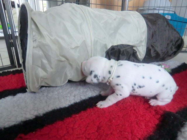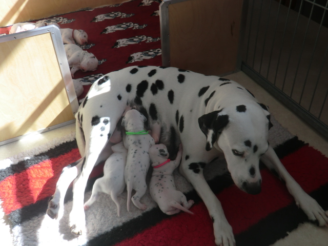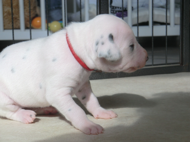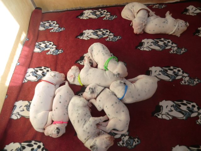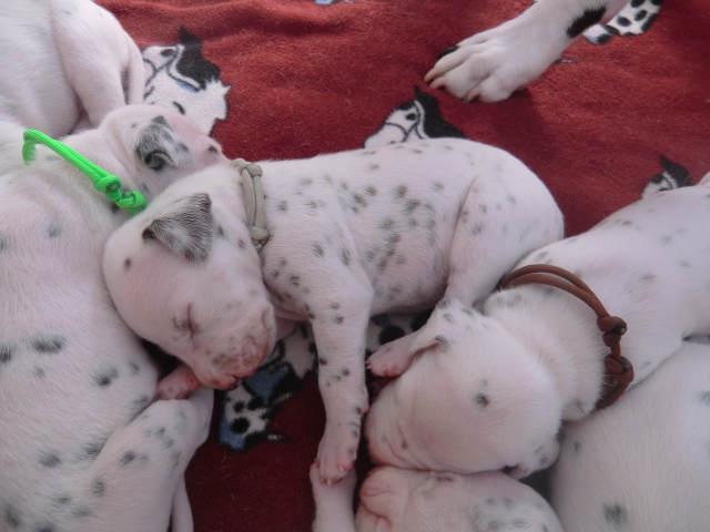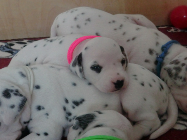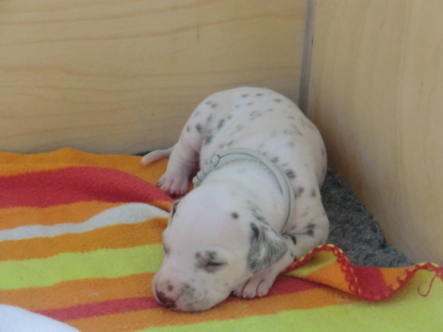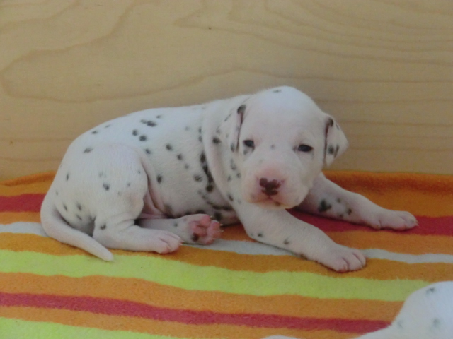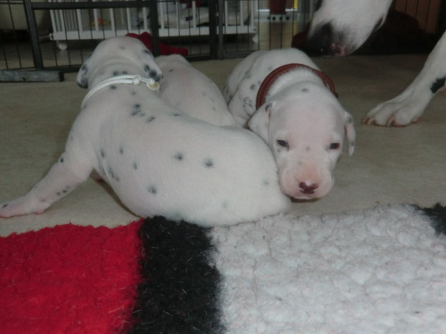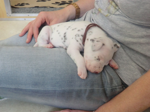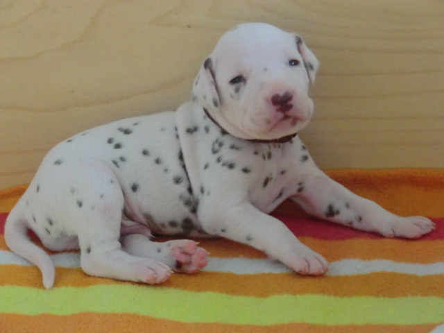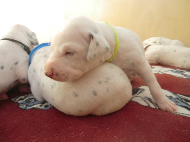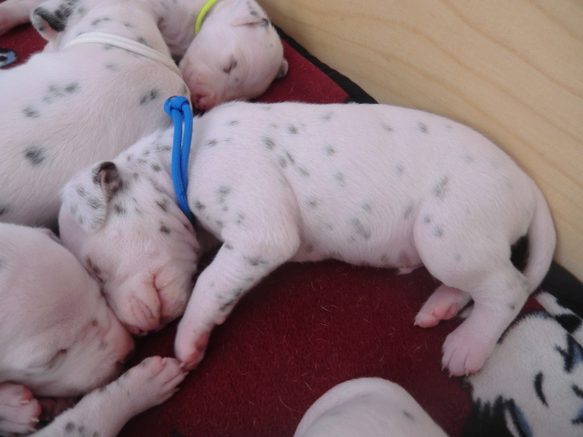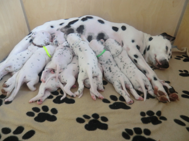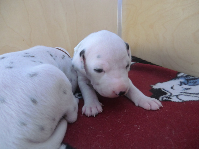 Unsere F-chen entwickeln sich prächtig! Alle Welpen haben die Augen geöffnet und schauen uns mit wunderschönen dunklen Augen an. Auch erfreuliche Nachrichten bezüglich des Gehörs gibt es: Alle Welpen hören!! Ob wirklich beide Ohren einwandfrei funktionieren wird uns ganz sicher erst die AEP Untersuchung in der 8. Woche verraten.