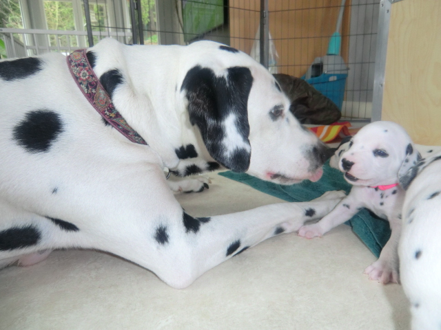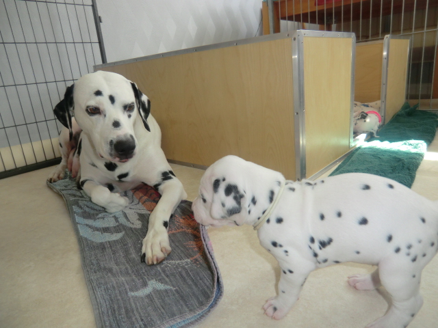 Die F-chen hatten die letzte Woche sehr sehr viel Besuch von Freunden, Bekannten und natürlich zahlreichen Familien die sich auf eines unserer F-chen freuen. Besonders hat uns Elena begeistert, die fast ausnahmslos entspannt und souverän auf die vielen ihr fremden Menschen reagierte - stolz zeigte sie allen ihre hübschen Punktekinder.