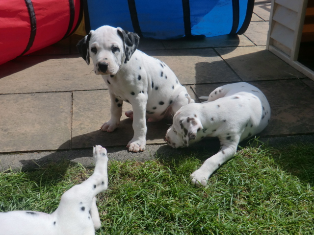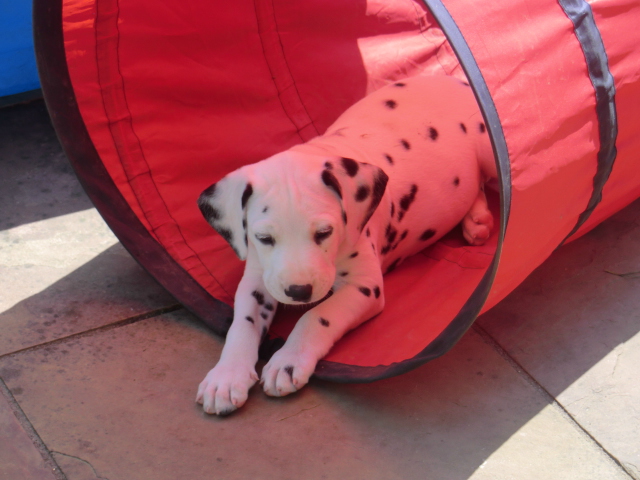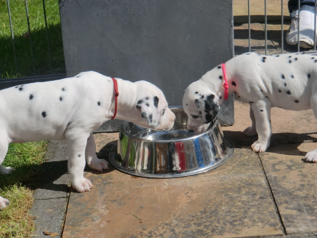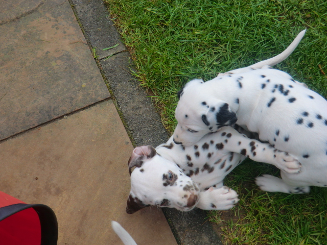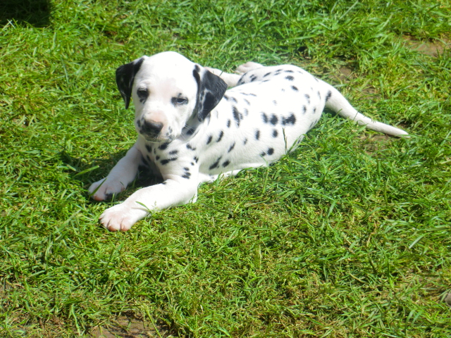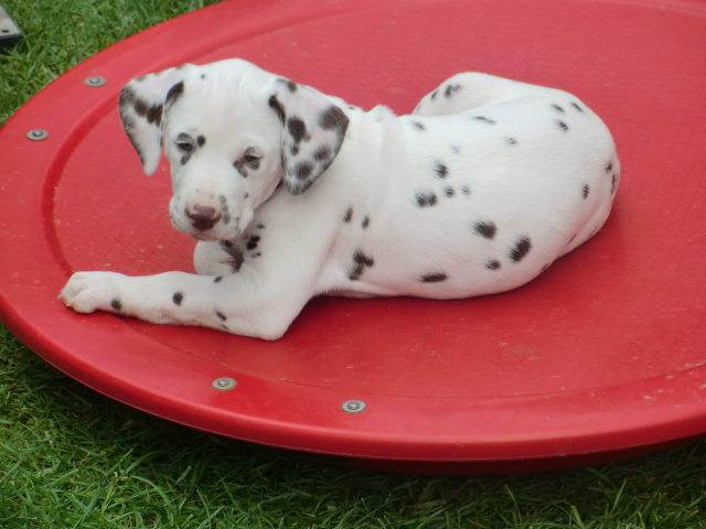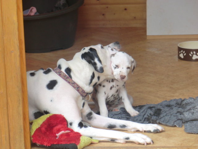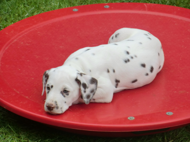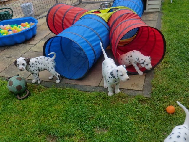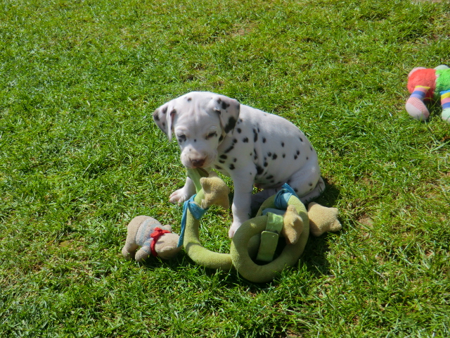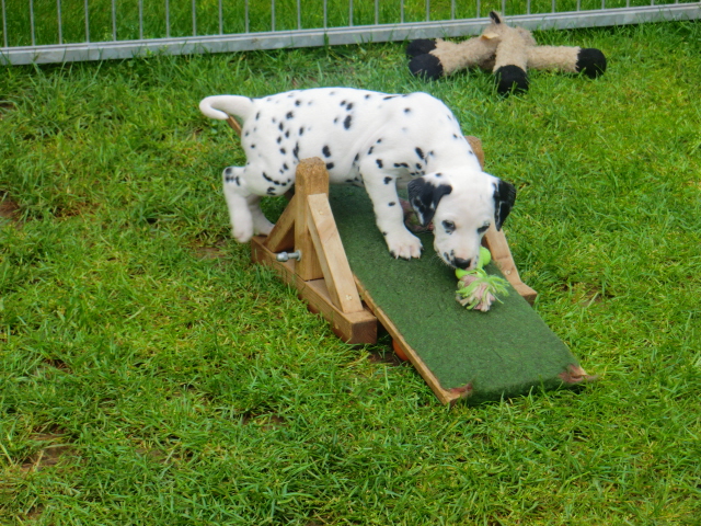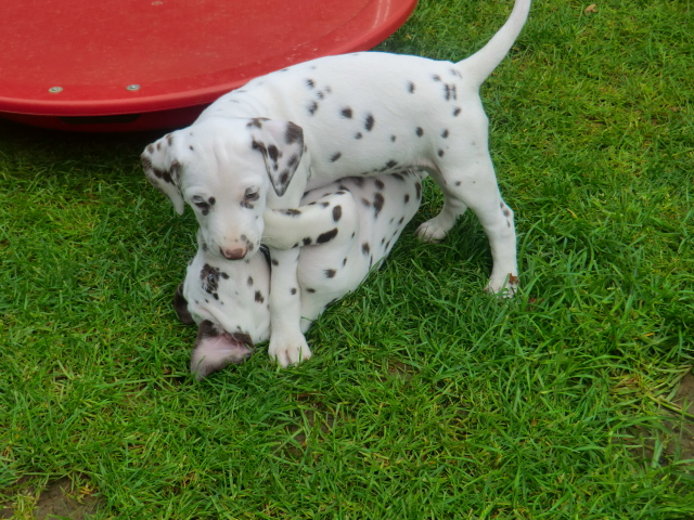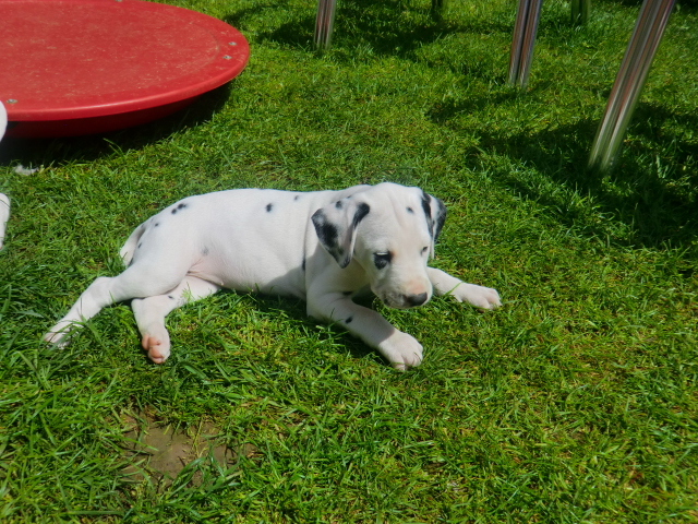 6. Woche ___________________________________________ Die 6. Woche ist wie im Flug vergangen und unsere F-chen sind bereits ordentlich gewachsen! Regelmäßiger Besuch steht für die Welpen auf dem Programm und die F-chen freuen sich immer riesig über die vielen "großen und kleinen Menschen" die zum kuscheln und anknabbern lassen vorbei kommen. Besonders beliebt sind natürlich Schuhe mit Schnürsenkel! Von den neuen Familien der F-chen werden keine Wege gescheut um das neue Familienmitglied so oft wie möglich zu besuchen - das freut uns natürlich sehr!Es gab mal wieder eine "leckere" Wurmkur für die Minis, und auch der Speiseplan wurde umfangreich erweitert, da Mama Elena der Meinung war das es Zeit ist die Milchbar zu schließen - wer kann es ihr verübeln bei den spitzen Welpenzähnen...Da die Halsbänder wetterbedingt in die Waschmaschine mussten, sind die meisten Bilder ohne die Erkennungsbändchen ;-)
