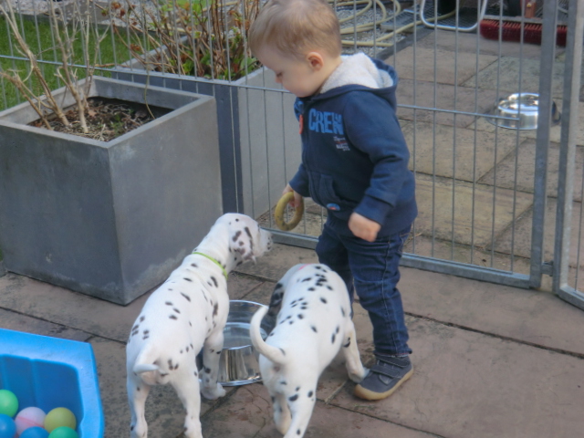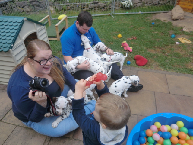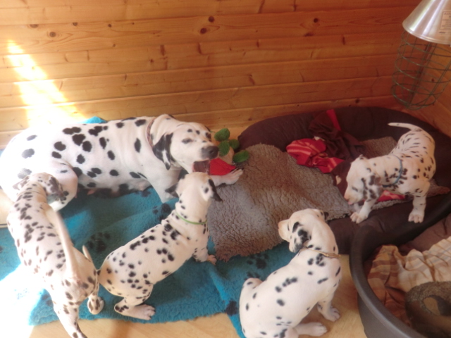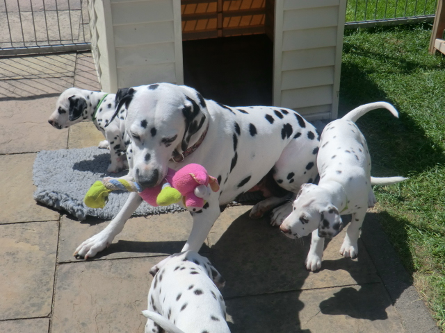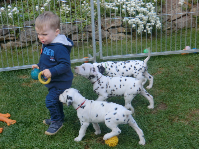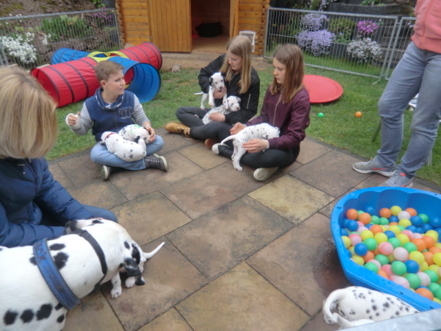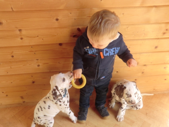 Bruder "Desperado Jack" aus dem D-Wurf war auch mit seiner Familie zu Besuch um sich seine kleinen Geschwister genauer anzusehen. Dabei ist immer wieder schön zu beobachten wie souverän und gelassen unsere Elena sowohl mit anderen Hunden, als auch mit den vielen Menschen ist. Sie ist einfach eine tolle Mama und wir sind ganz besonders stolz auf sie und ihren letzten Wurf und sind uns ganz sicher das sie wieder viele ihrer positiven Eigenschaften an die F-chen weitergegeben hat.