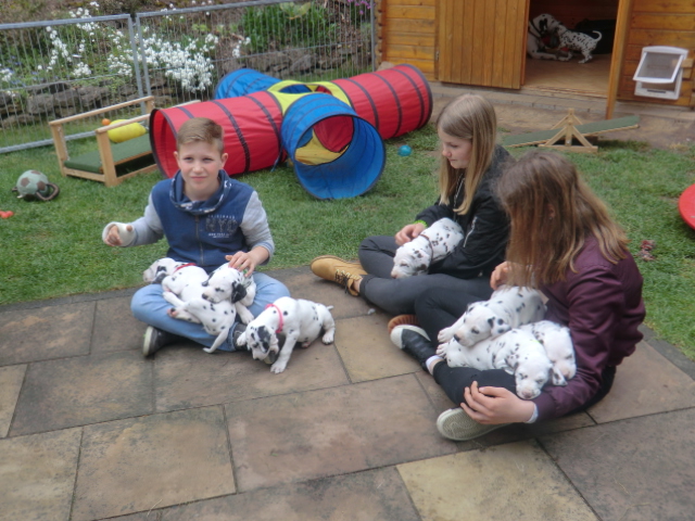 Nächste Woche wird wieder aufregend für uns und die F-chen, denn es stehen wichtige Termine auf dem Programm. Zum einen geht es zur AEP Untersuchung nach Meerbusch, was auch die erste Autofahrt für die F-chen sein wird, und auch die Wurfabnahme steht zum Ende der 8. Woche auf dem Programm. Wir sind sehr gespannt und werden natürlich berichten ;-)