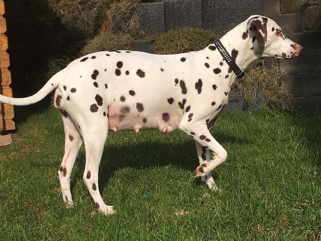 Jetzt sind es noch 3 1/2 Wochen bis zum errechneten Geburtstermin der G-chen. Bailey geht es prima, nur die sportliche Figur ist dahin und ein kleines Babybäuchlein zeichnet sich ab. Die Entwicklung der Welpen ist soweit abgeschlossen und die letzten Wochen werden die Welpen in Baileys Bauch mit wachsen verbringen. Der Bauchumfang liegt aktuell bei 67 cm! Wir sind sehr gespannt wie viele es werden, aber noch mehr wie die Farbverteilung aussehen wird, da es im G-Wurf auch wieder Schokopünktchen geben wird! <3