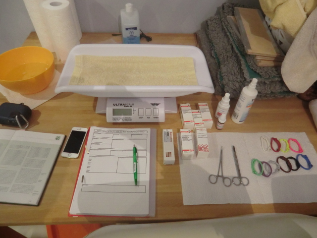 Juhu unsere G-chen sind vollständig! Nachdem ich die ganze Nacht vor der Wurfkiste bei der nervösen Bailey verbracht habe, ging es Vormittags um 9:50 Uhr endlich los und die erste Fruchtblase ist geplatzt. 30 Minuten später setzten auch die Wehen ein und die ersten 6 Welpen kamen in schönen kurzen abständen problemlos auf die Welt. Nach Welpe Nummer 6 kam die Geburt ins stocken. Nachdem 1,5 Stunden die Wehen nicht mehr einsetzten, ich mir aber 100 % sicher war das die Geburt noch nicht abgeschlossen war, führte uns der Weg mach mehreren Telefonaten mit verschiedenen Tierärzten - die zwar Notdienst hatten, aber leider nicht die notwendigen Medikamente vorrätig - letztendlich ins nahegelegene Mechernich. Nach einer kurzen Ultraschall Untersuchung war klar das noch Welpen drin sind. Leider konnte beim ersten Welpen keine Herztätigkeit mehr festgestellt werden. Bailey bekam eine Wehenspritze (Oxydocin) um hoffentlich die restlichen Welpen ohne größeren Eingriff auf die Welt zu holen. 25 Minuten nach der Spritze war der leider bereits verstorbene Welpe endlich auf der Welt und das Geburtshindernis für die nachfolgenden Welpen behoben. Wenige Minuten später kam auch schon der nächste Welpe, ein wunderschöner w/s Rüde. Nach den zwei Welpen fertigten wir noch ein Röntgenbild an, um zu sehen ob noch Welpen in Baileys Bauch sind, und tatsächlich war da noch ein Welpe. Auch dieser kam kurze zeit später problemlos und unversehrt auf die Welt.