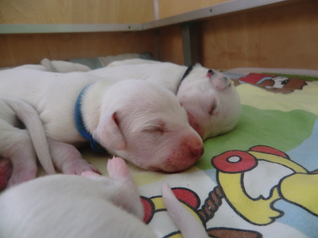5 Tage sind die G-chen jetzt schon alt und alle werden zum Wochenende bereits ihr Geburtsgewicht verdoppelt haben! Bailey kümmert sich großartig um die Rasselbande der man den ganzen Tag zuschauen könnte! Unser Sohn übernimmt auch schon einige kleine Aufgaben und reicht Bailey Wasser in die Wurfkiste, bringt ihr Futter und streichelt mit Vorliebe die Welpen! ;-)