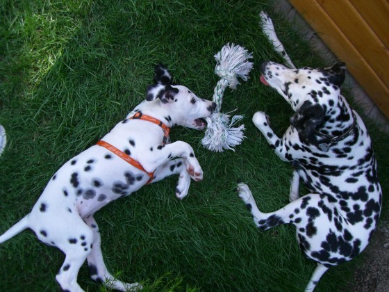 Mit anderen Hunden versteht er sich in der Regel sehr gut, wenn er von Beginn an den Kontakt zu Artgenossen kennt. Deshalb ist es sehr wichtig das der Dalmatiner vom Welpenalter an die Hundeschule/Welpenschule besucht und richtig sozialisiert wird.