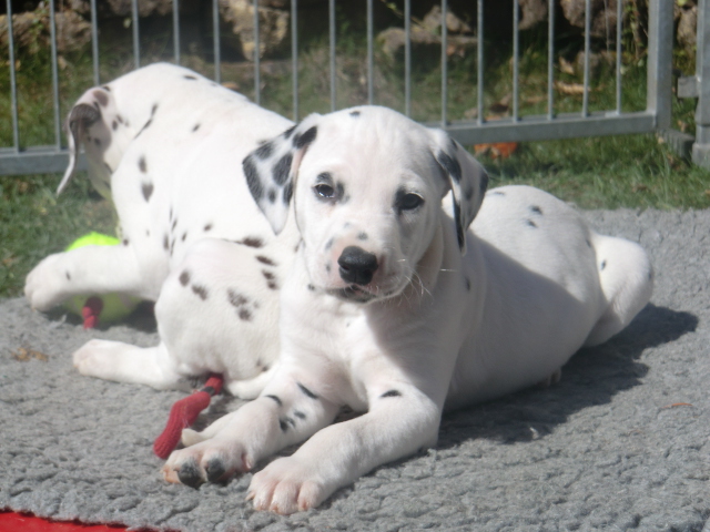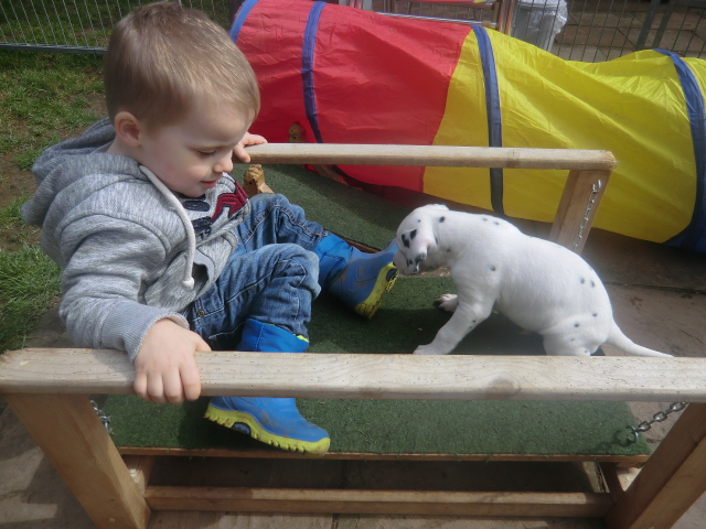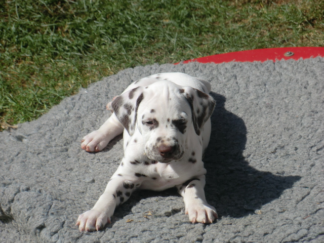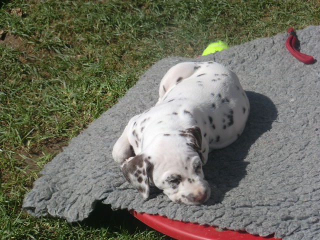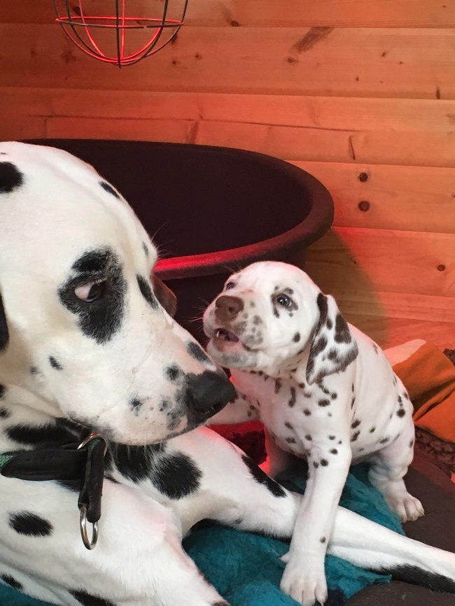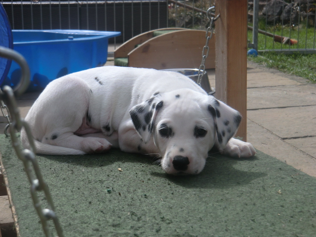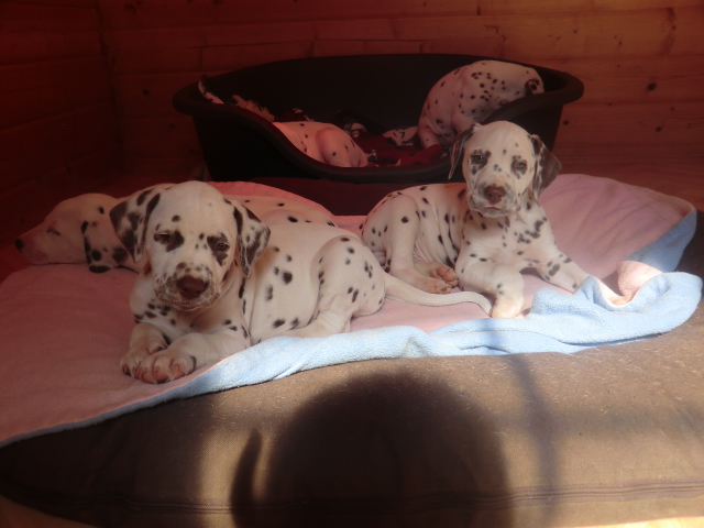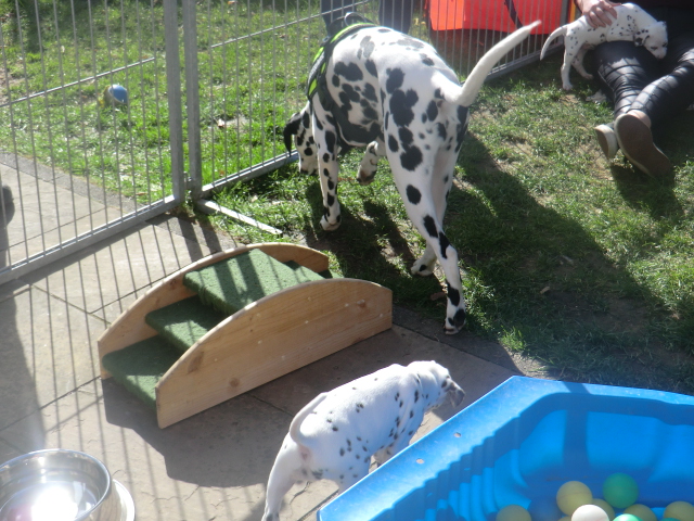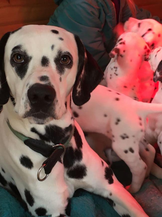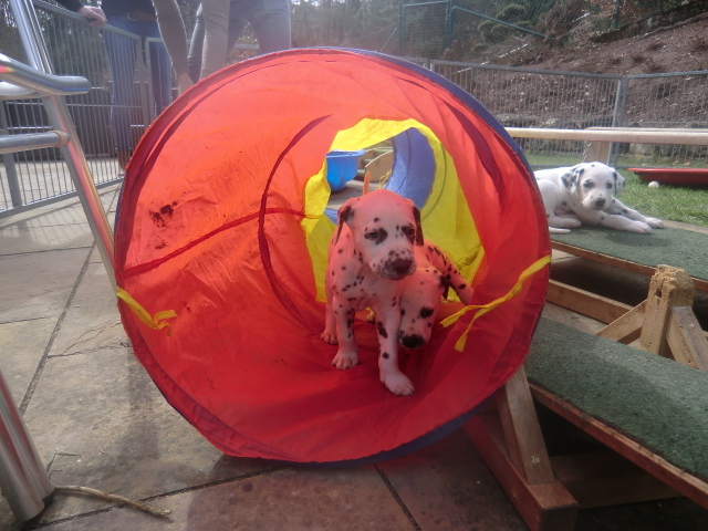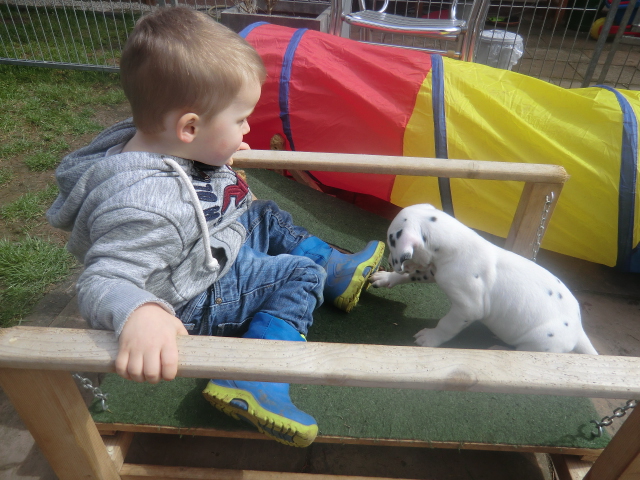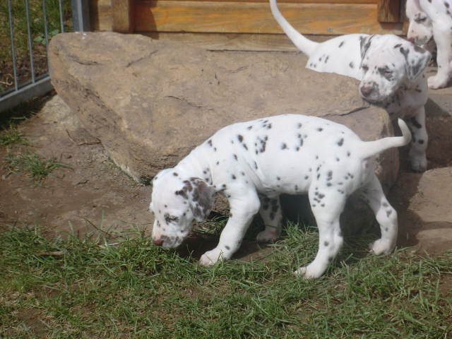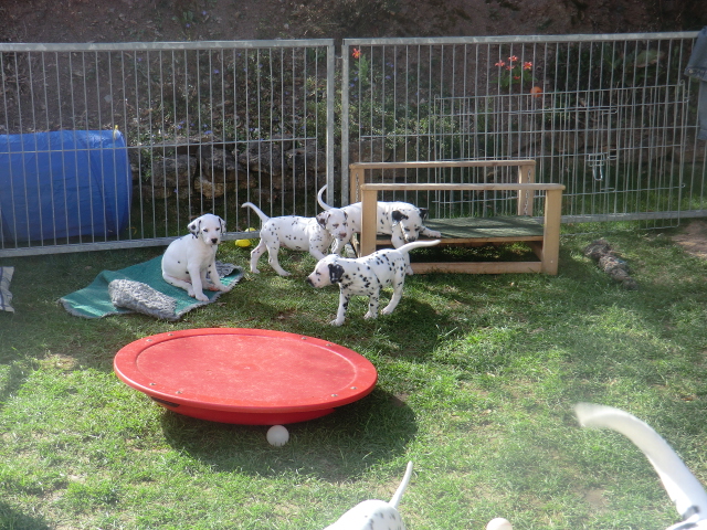 Mama Bailey guckt immer mal wieder nach den Welpen, geht aber immer weniger zu ihren Punktekindern