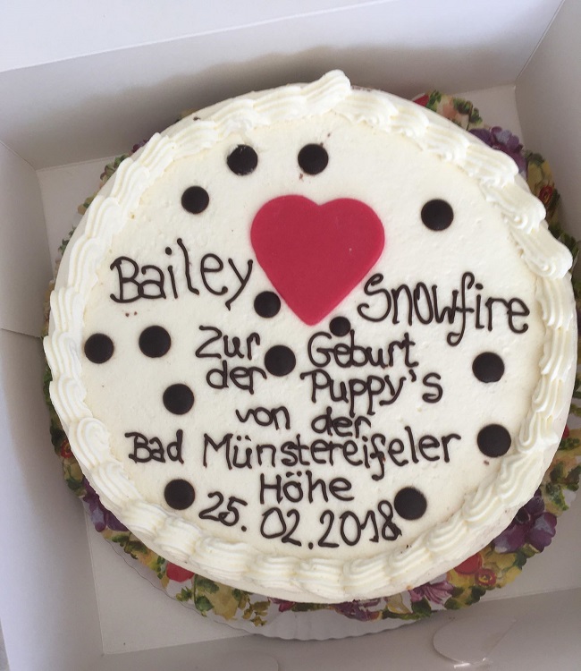 Zum Ende der Woche war auch Snowfire´s Familie zu Besuch um sich die Rasselbande live anzuschauen. Nochmal vielen lieben Dank für alles und ganz besonders den tollen Kuchen!!! Auch die Halbgeschwister aus dem E-Wurf, Kafka & Arko mit ihren Familien waren zu Besuch bei uns in der Eifel um die G-chen zu knuddeln und einen schönen Spaziergang zu machen!