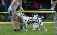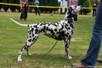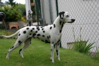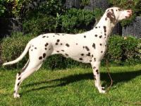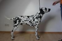 Easy ist eine harmonisch aufgebaute, gleichmäßig weiß/schwarz gefleckte Hündin, die eine sehr ansprechende Kopfohrplatte schmückt. Sie liegt mit einem Stockmaß von 55 cm perfekt im Standard und folgt damit nicht dem Trend der immer größer werdenden Punktehunde. Sie besitzt einen femininen Kopf, schöne mittelbraune Augen, einen festen geraden Rücken, Vorzügliche Winkelungen der Vor- und Hinterhand, vorzügliche Vorbrust & Brusttiefe und ein schönes Gangwerk mit korrektem Schub aus der Hinterhand.